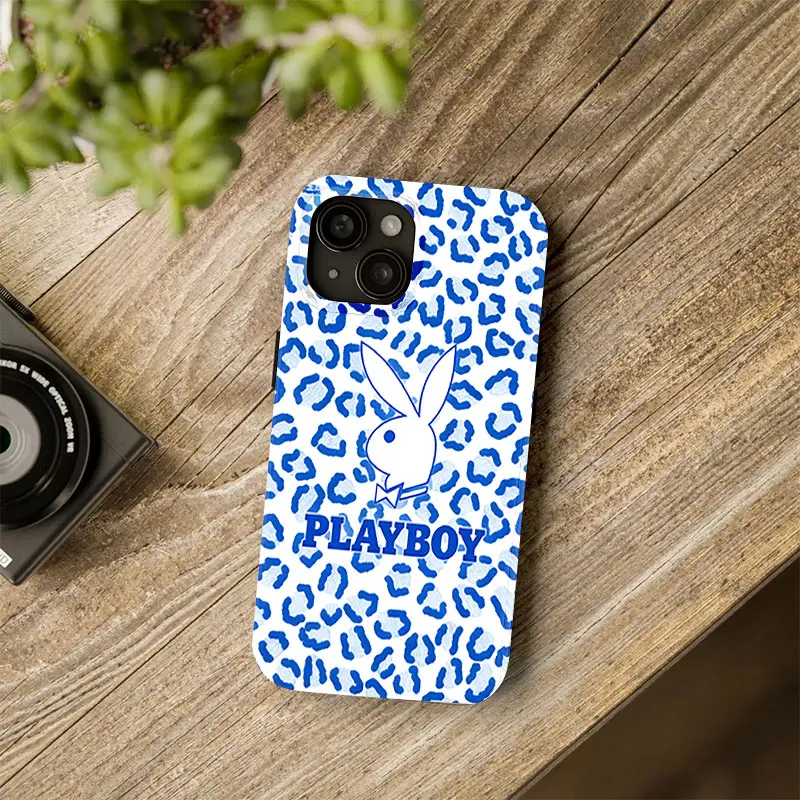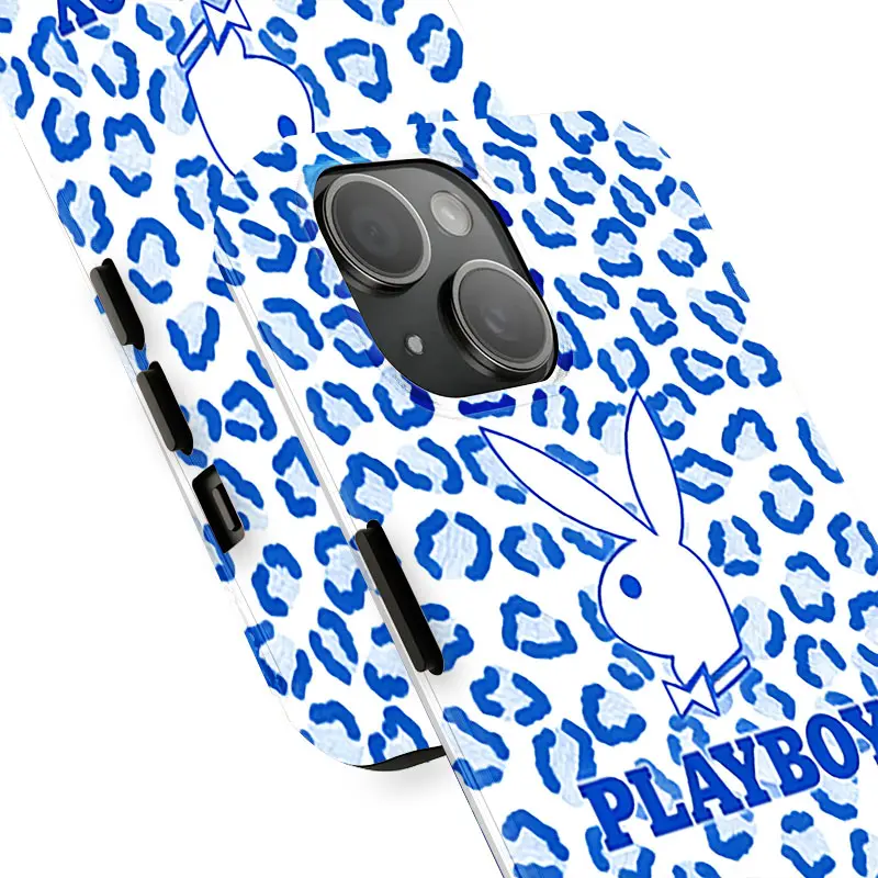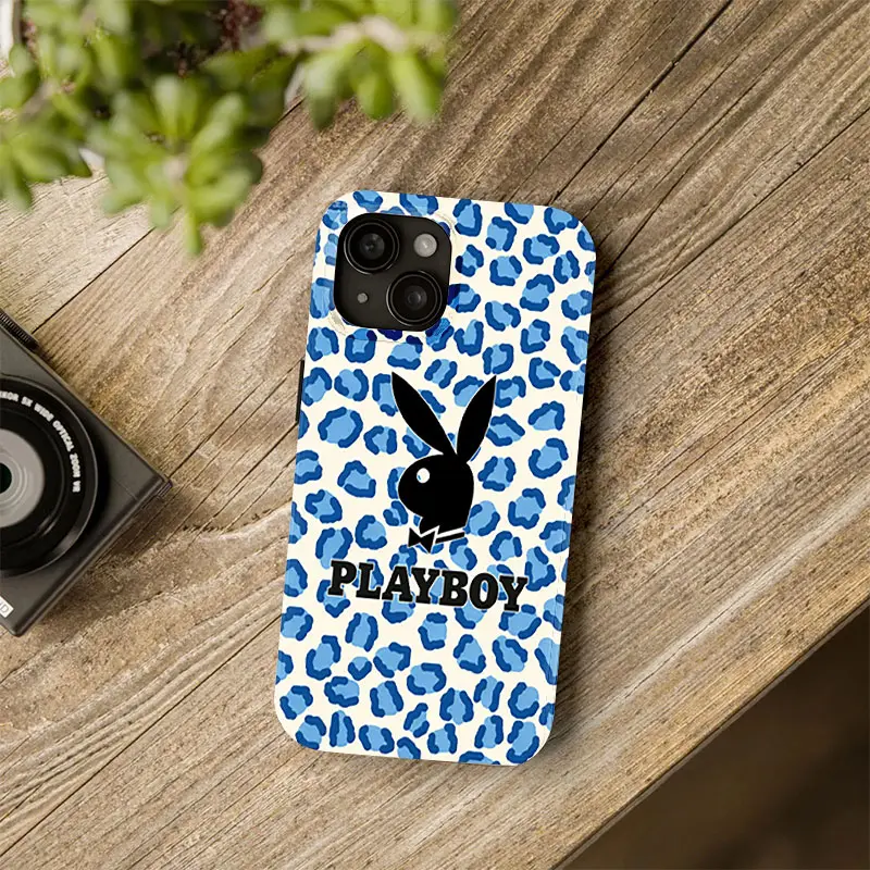 Playboy leopard print phone case, compatible with iPhone 17/16/15/14/13/12/11 Pro Max/Plus and Samsung Galaxy S23FE/22/23/24/25. Adorned with wildflower patterns, a perfect gift for both men and women.