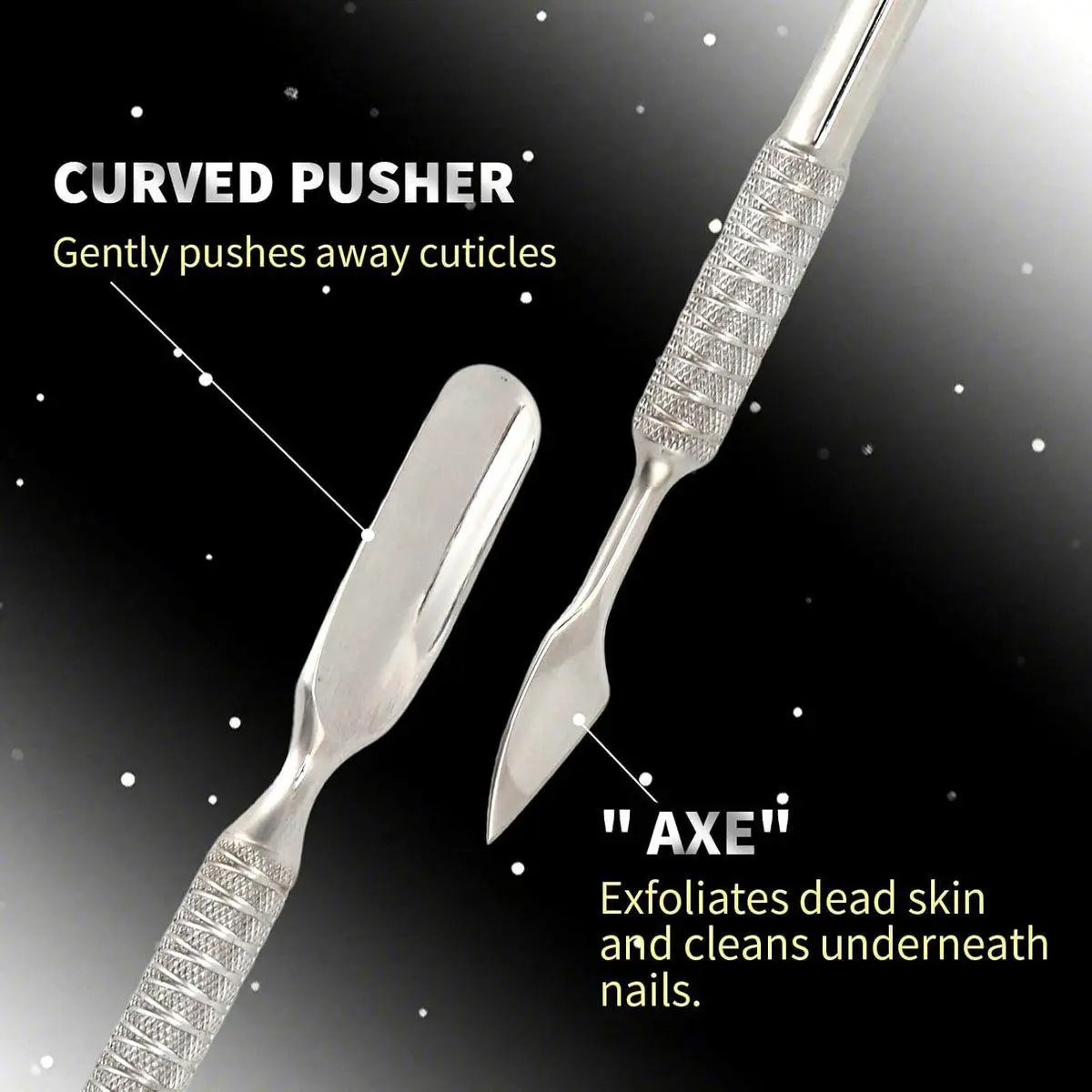 Dual-Design Functionality: Features two precision ends: a rounded pusher for gently push away cuticles and a pointed tip for removing cuticles and clean underneath nails, ensuring a professional manicure or pedicure.