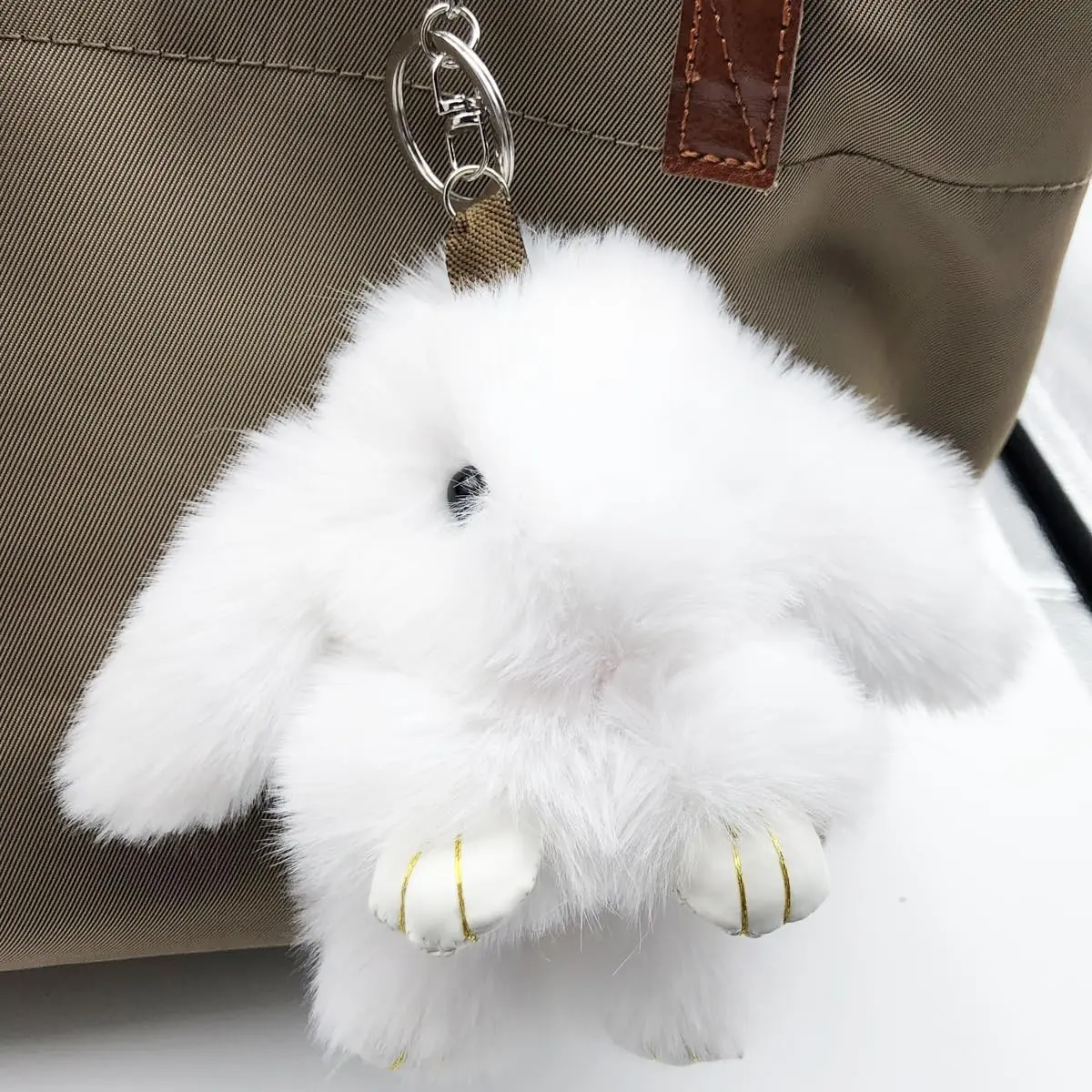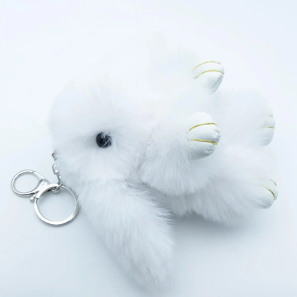 Soft and cute bunny keychain, faux rabbit fur fluffy keychain, bunny plush key ring for women.
