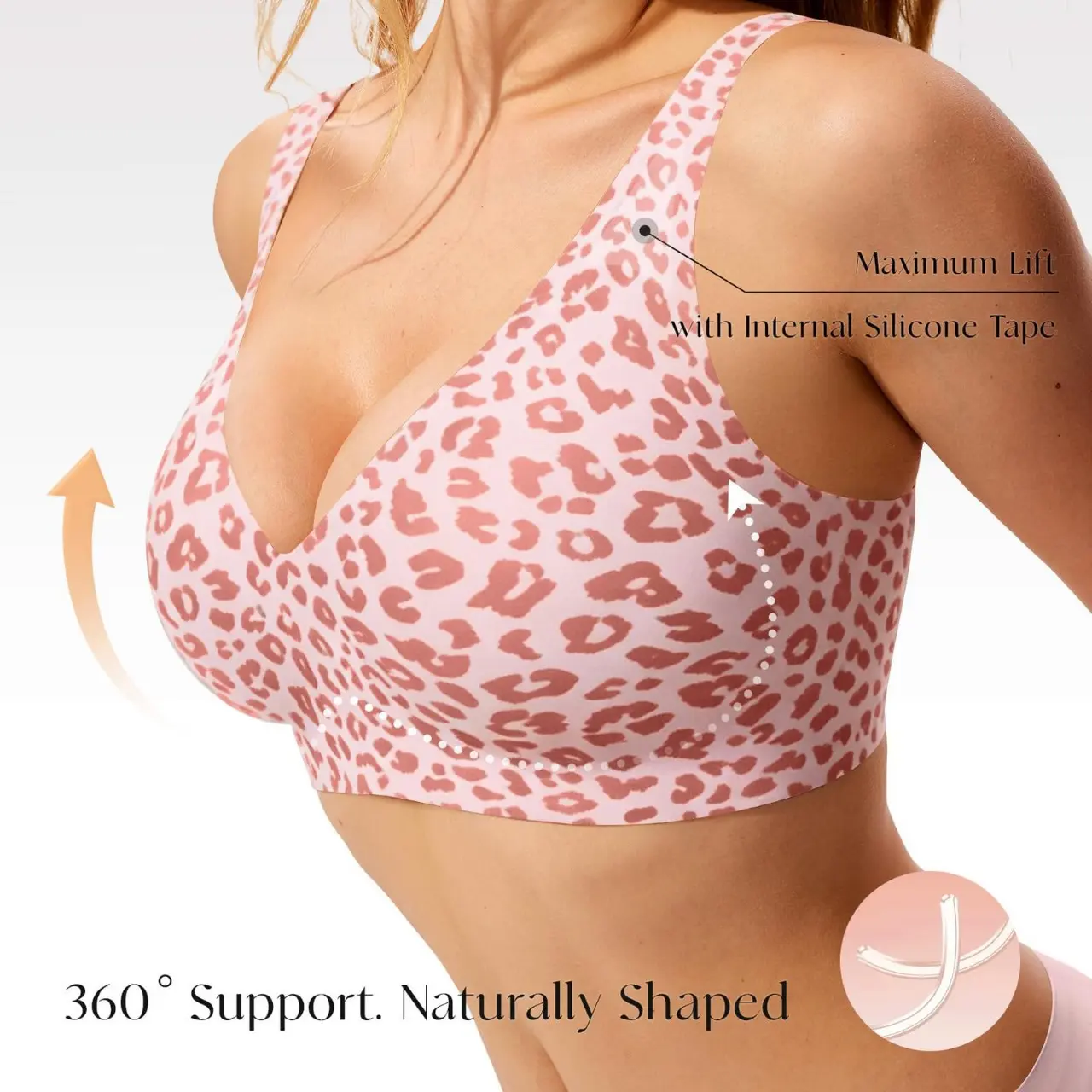 Popilush Seamless Wireless Leopard Print Jelly Bra - Adjustable strapless sexy V-neck one-piece molded cup bra, comfortable and supportive Minimalist Fit Womenswear
