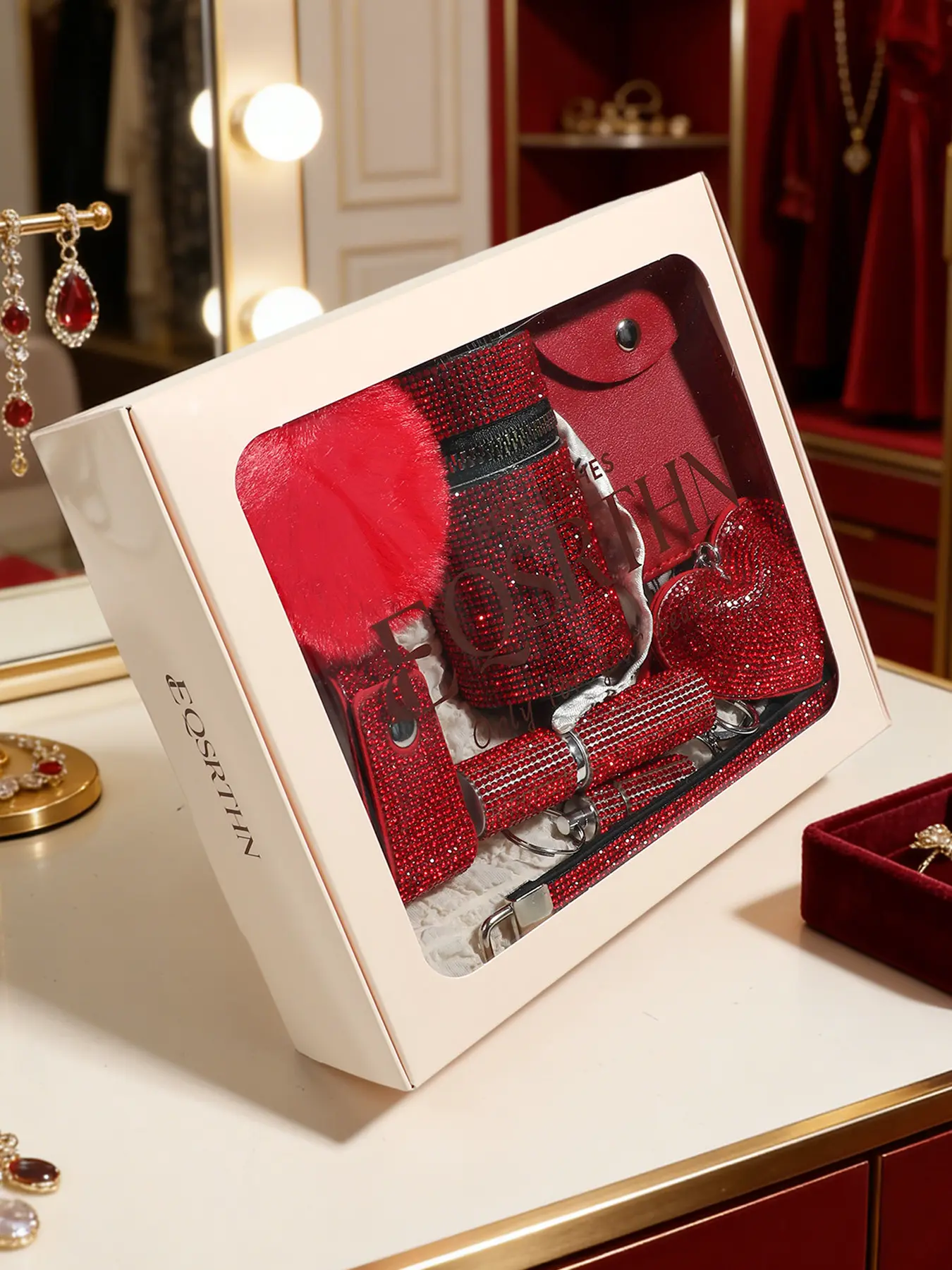 14Pcs Cute Red Rhinestone Keychain Gift Set For Women, Tiktok Trending Items, Self Defense (NO Window Breaker), Small Handbag Keyring Accessories