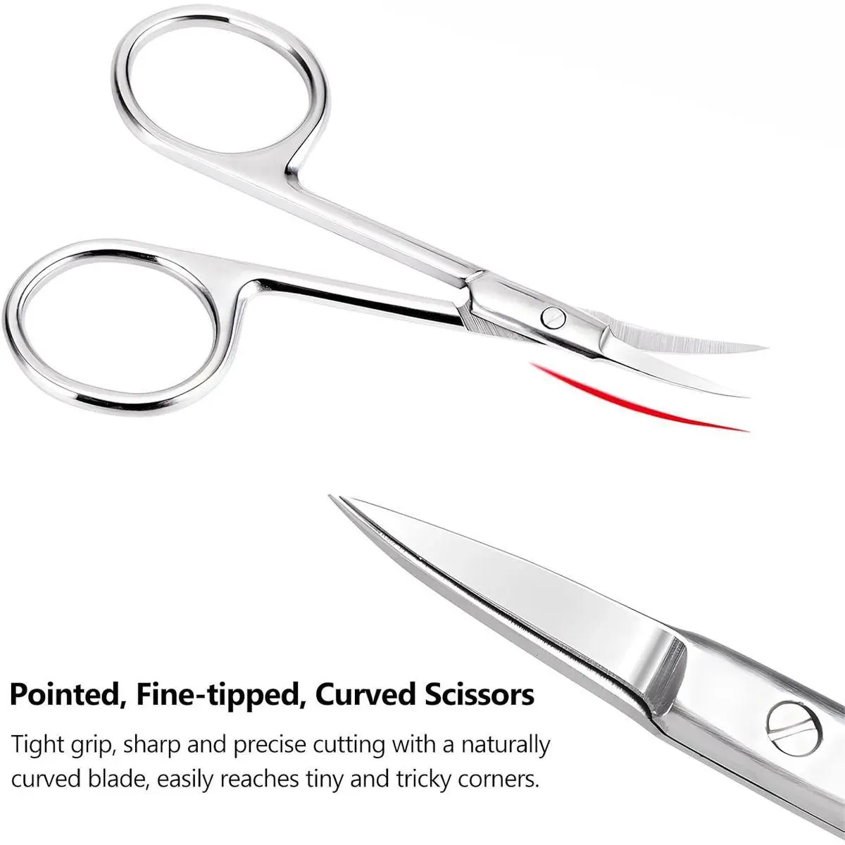 Curved Blade Cuticle Scissors: Perfect for trimming eyebrows, removing ingrown hair, and tackling dry skin. Also great for hangnail removal and cuticle smoothing; even shapes false lashes and aids in decoupage tasks.