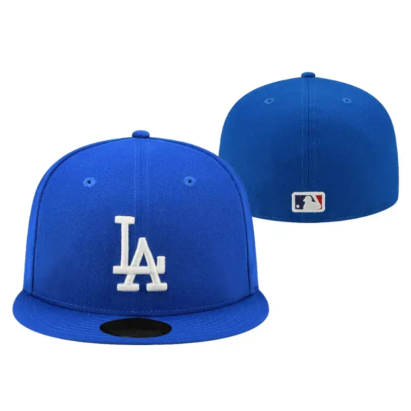 5. New Era Los Angeles Dodgers 59FIFTY Fitted Cap – Blue Edition Flat Brim Baseball Hat with Embroidered LA Logo, MLB Streetwear Urban Fashion Cap for Men Women