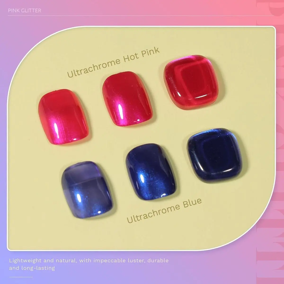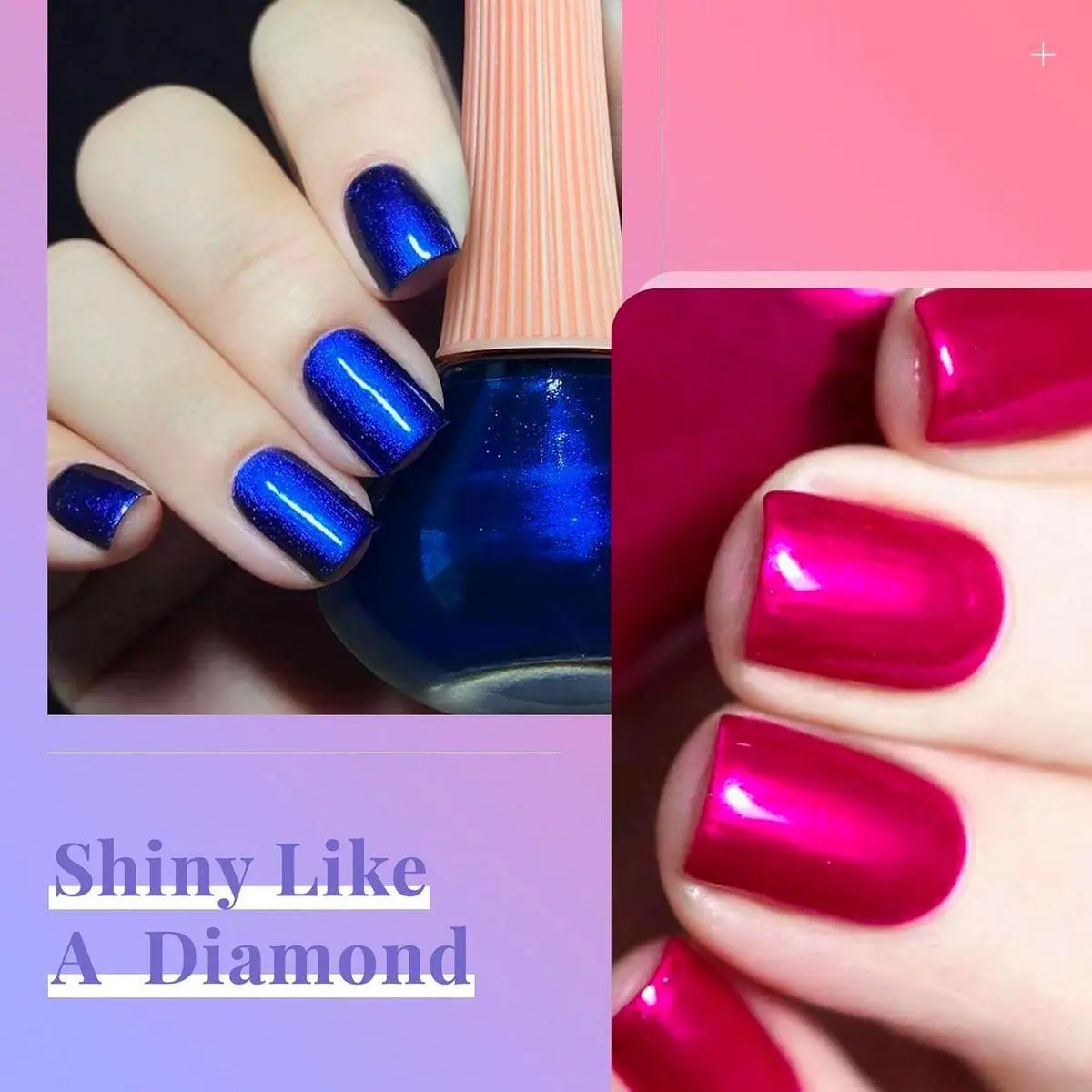 Radiant Hot Pink and Blue Shimmer Nail Polish: Our luxurious hot pink and blue are further enhanced by a vivid pink and blue shimmer that effortlessly catches the light.