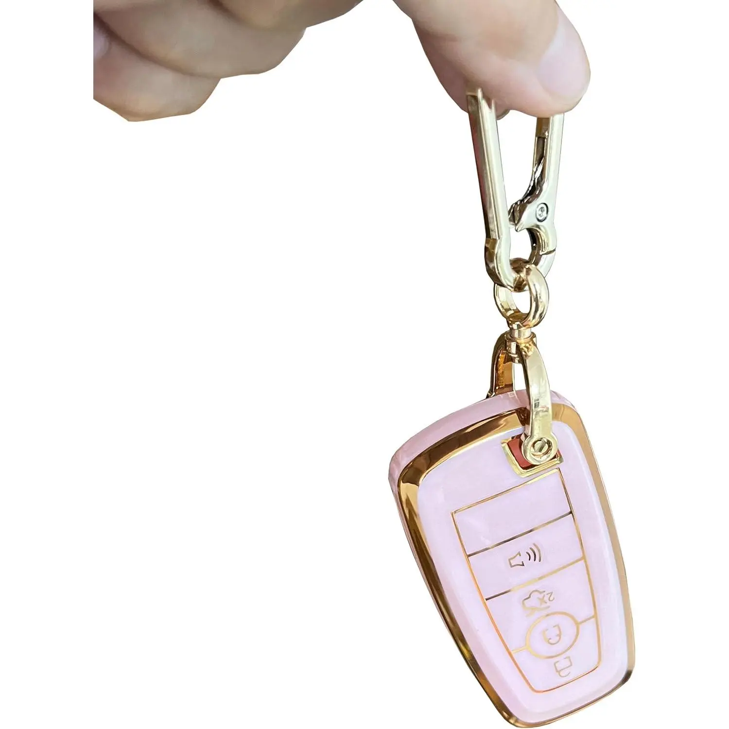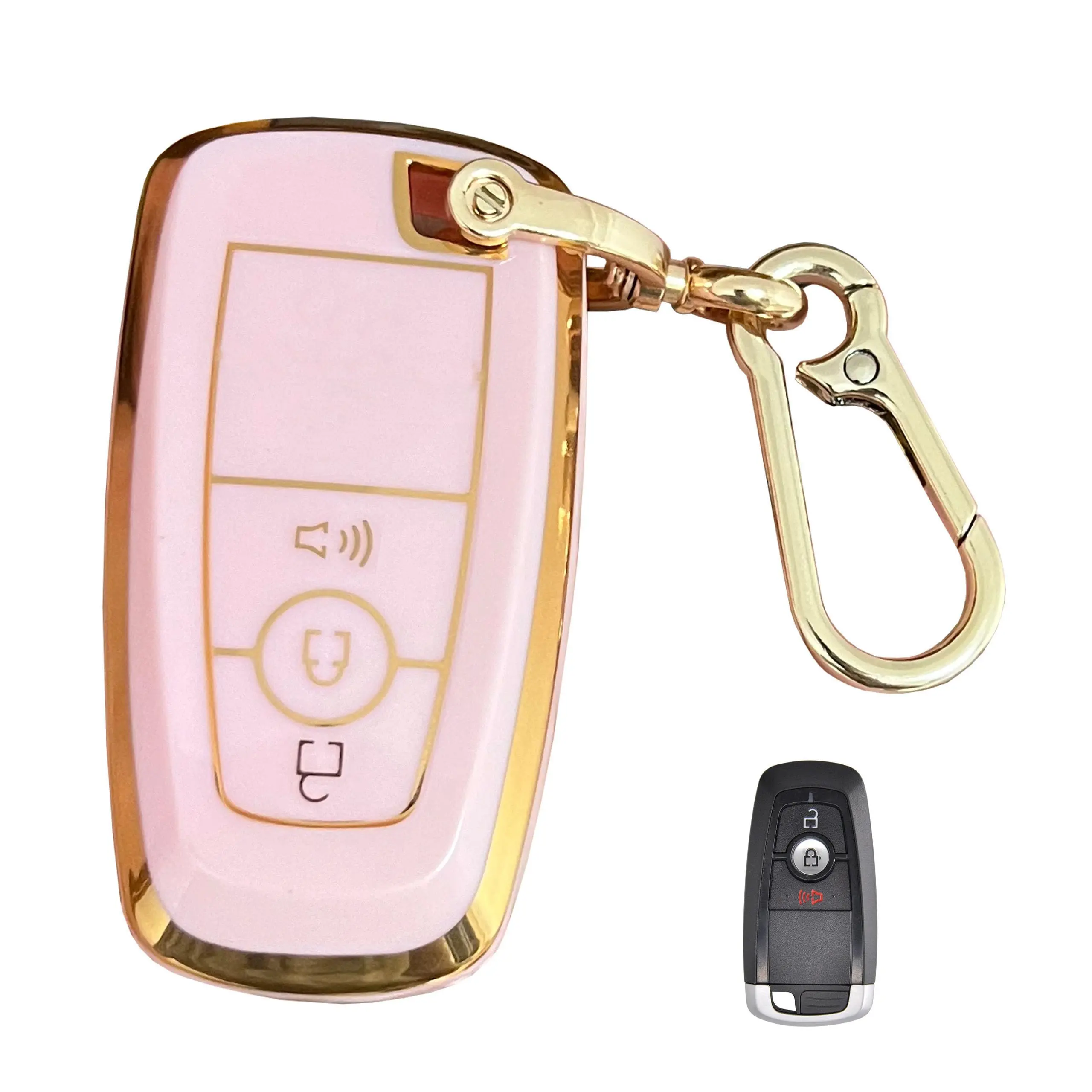 Keyless Entry Remote for Ford Key Fob Cover Protective Shell Fits for Ford Edge Escape Expedition Explorer Fusion Mustang Ranger F-150 F-250 (4-Button-A-Pink)