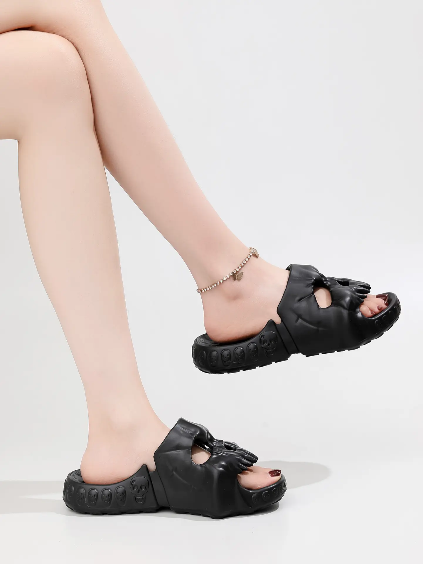 Couples’ 3D Skull Slippers for Men/Women, Non-Slip EVA Cloud Slides, Gothic Cool Skull Design Summer Outdoor Indoor Sandals