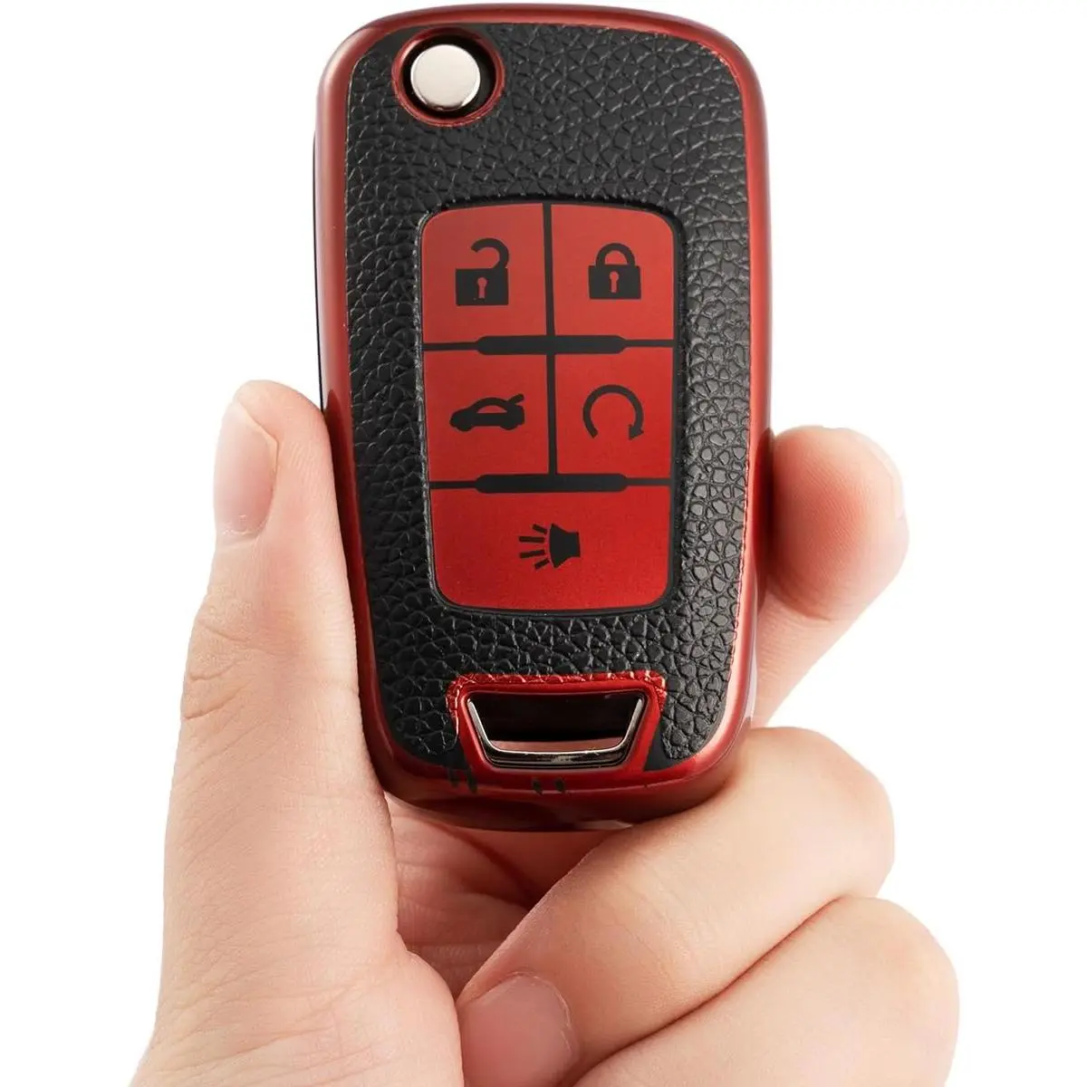 Key Fob Cover for Chevy, Soft TPU Leather Key Fob Case for Chevrolet Camaro Cruze Equinox Malibu Trailblazer Impala Sonic Buick Cascada Encore Car Key Accessories (Red)
