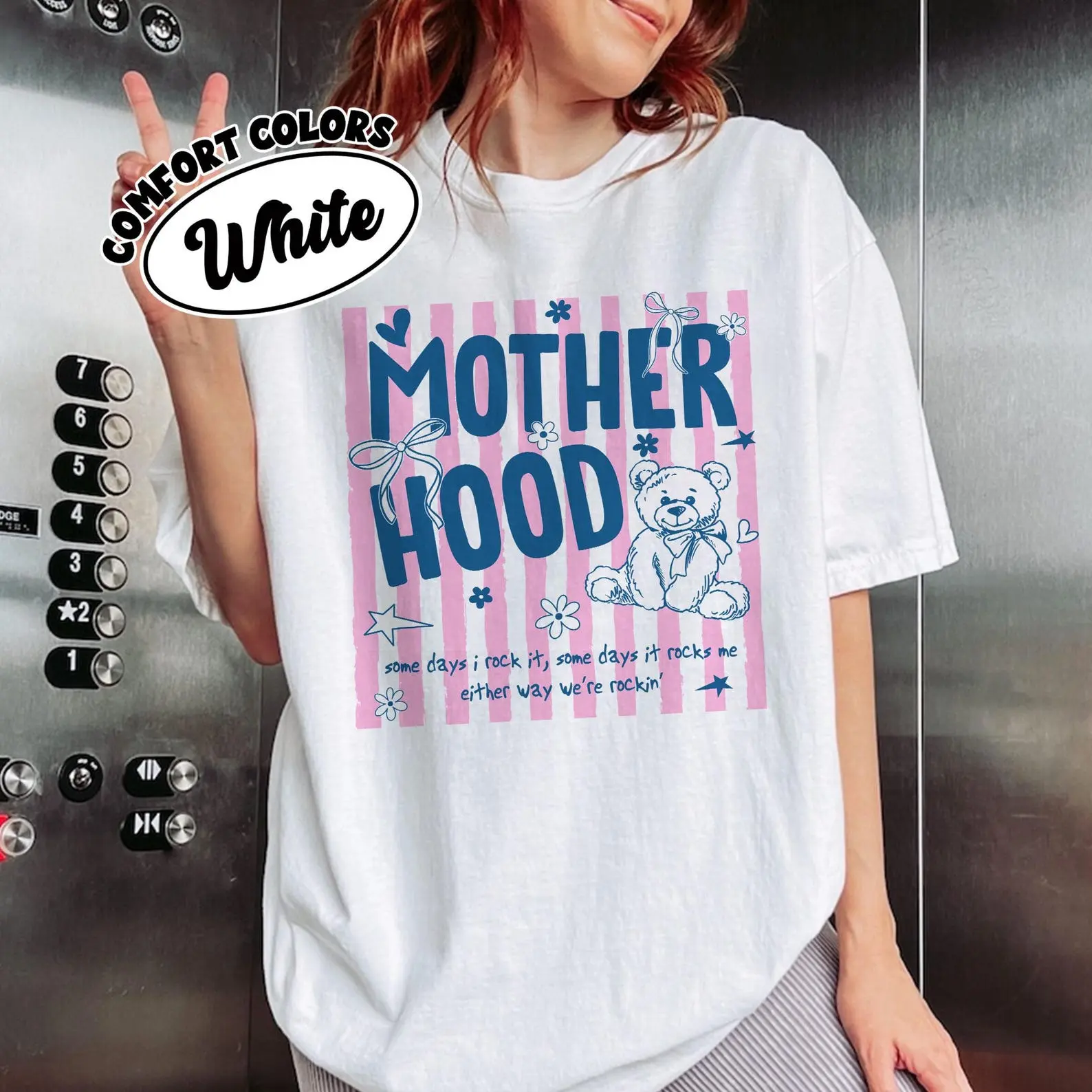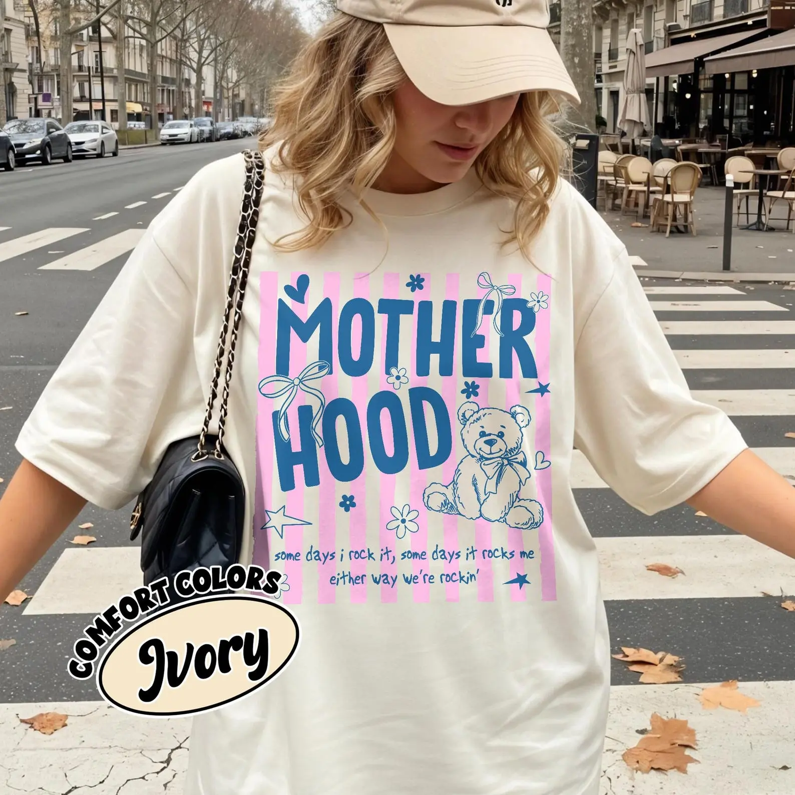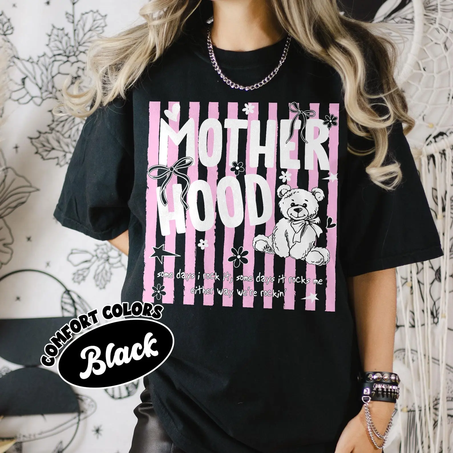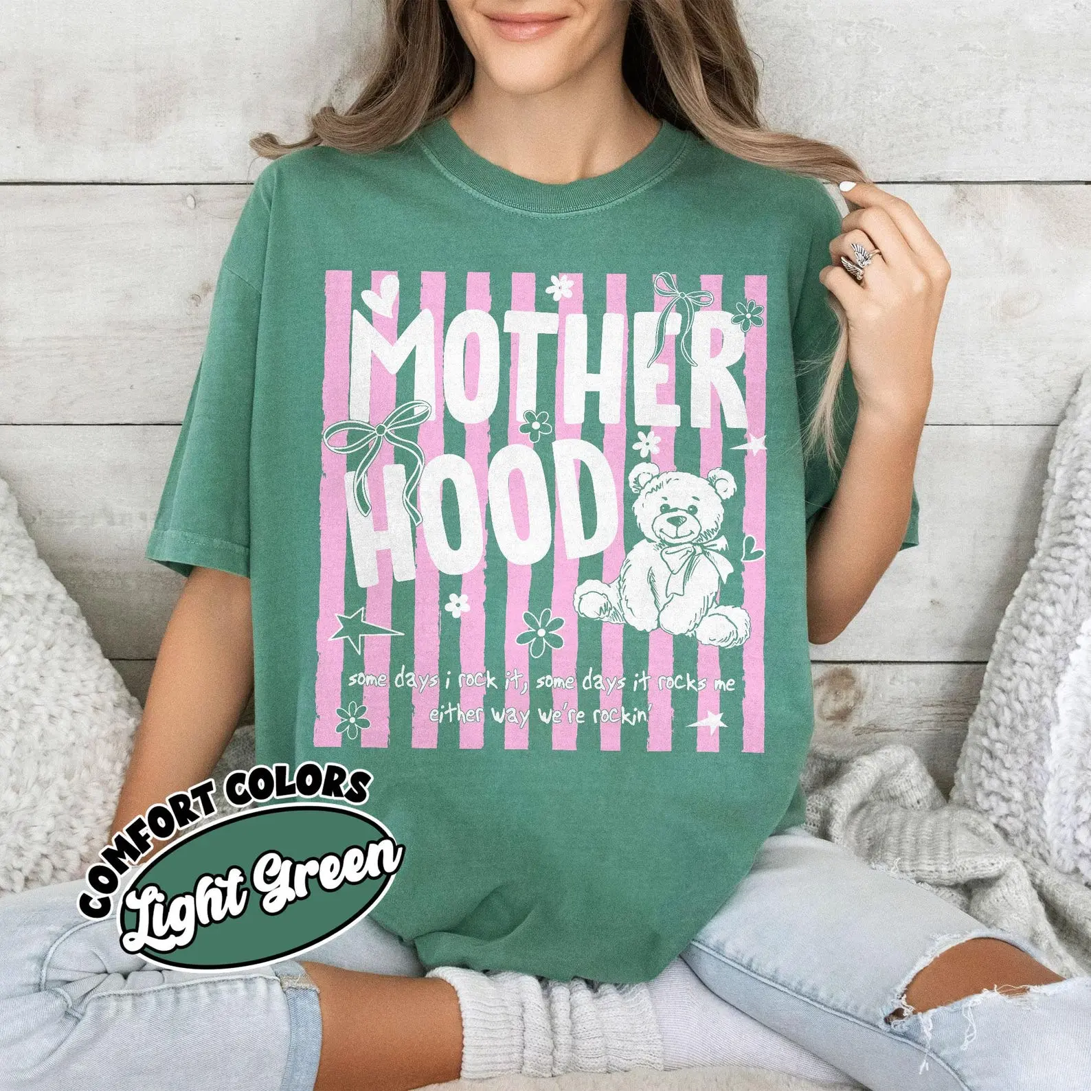 Striped Motherhood Comfort Colors Shirt, Trendy Mama Tshirt, Preppy Mom Tee, Gifts For Mother, Gamer Gift, Unisex T-Shirt