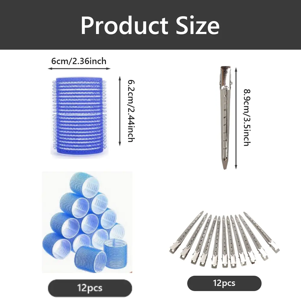 24pcs Self-adhesive Hair Curlers and Clip Set,12pcs Set of Large Self-adhesive Curling,12pcs Duckbill Clips, for Thick Thin Long Medium Short Hair Bangs DIY Hairdressing Tool, Professional Heat Conductivity, Long Lasting Hold for Voluminous Waves
