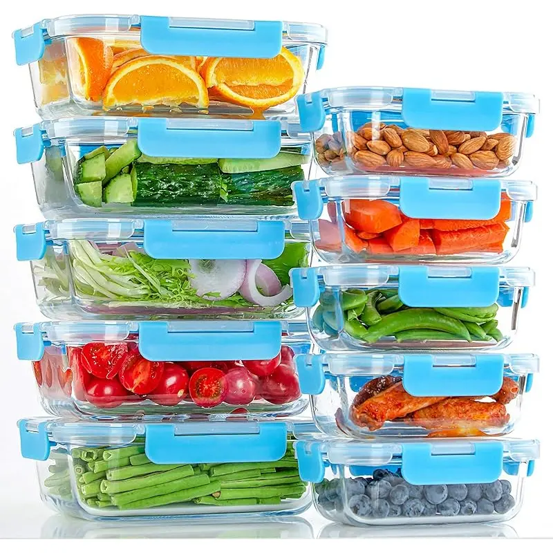 10 Pack Glass Food Storage Containers with Lids Leakproof, Airtight Glass Meal Prep Containers For Lunch, On The Go, Leftover, Dishwasher Safe