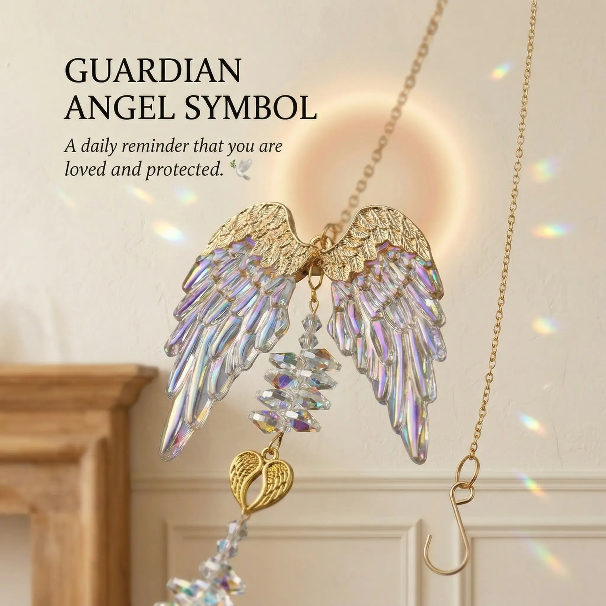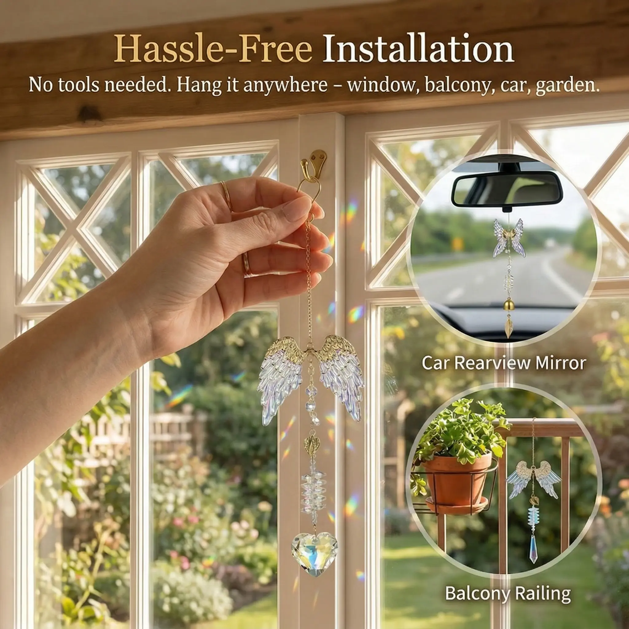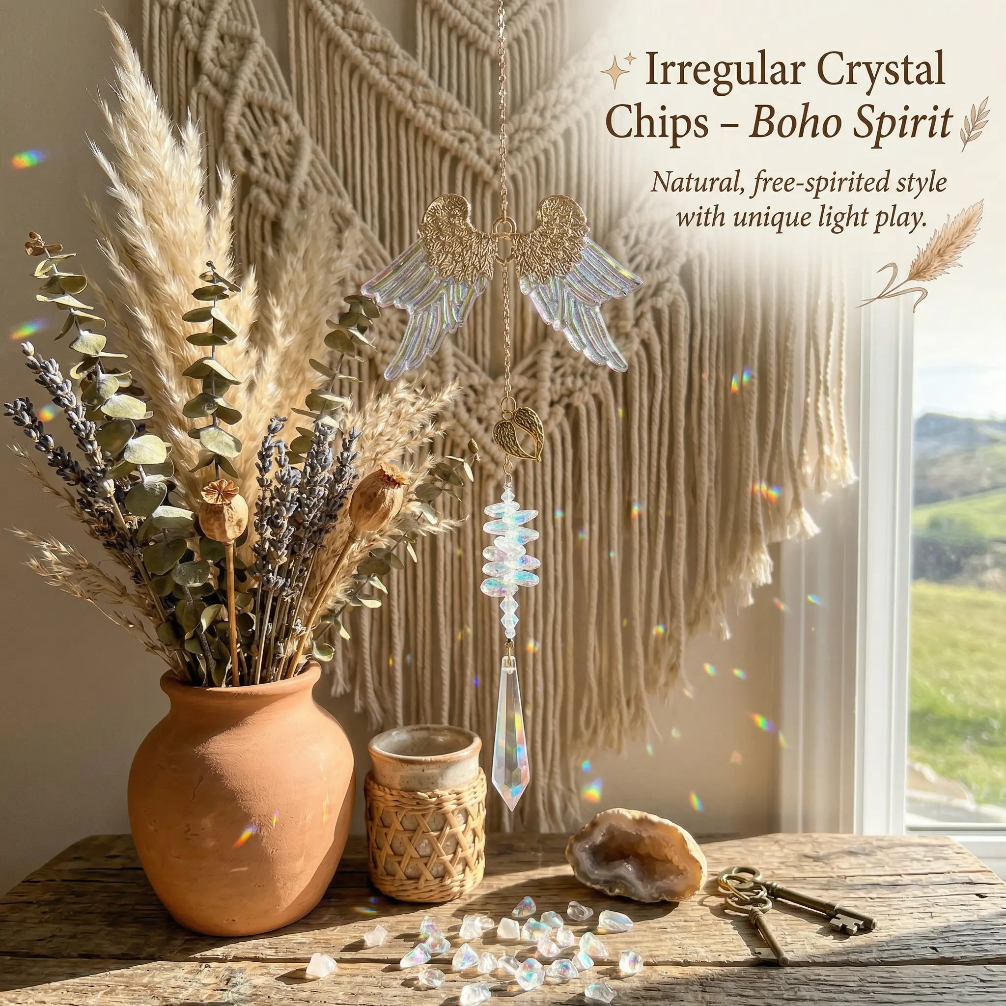 5. Angel Wing Crystal Sun Catcher 4 Styles - Hanging Rainbow Maker with Heart & Bell for Home Decor , Handmade Crystal Prism Rainbow Maker for Window & Garden , Crystal Hanging Ornament Gift for Mom & Friends glass christian art office wall gardening