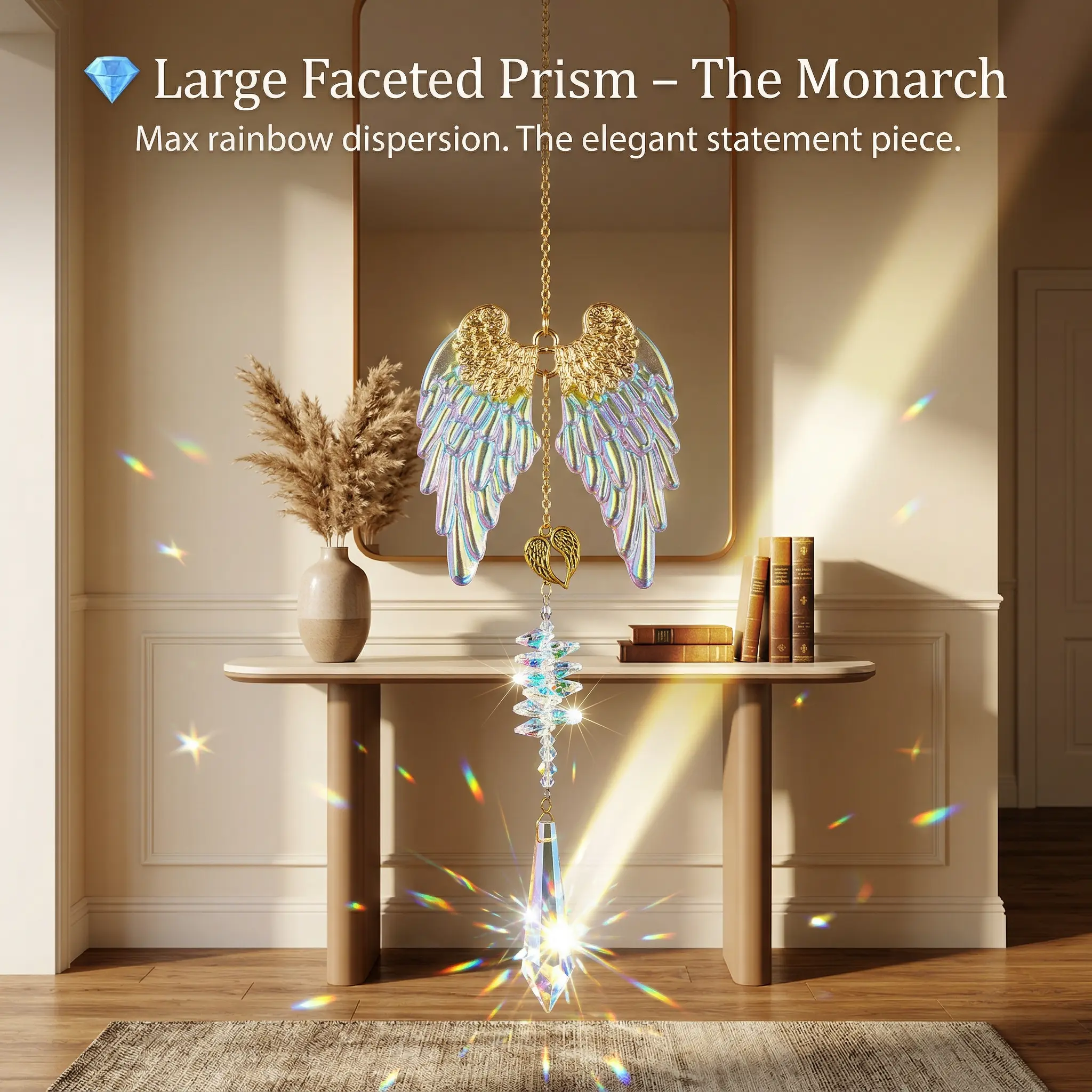 Angel Wing Crystal Sun Catcher 4 Styles - Hanging Rainbow Maker with Heart & Bell for Home Decor , Handmade Crystal Prism Rainbow Maker for Window & Garden  , Crystal Hanging Ornament Gift for Mom & Friends glass christian art office wall  gardening