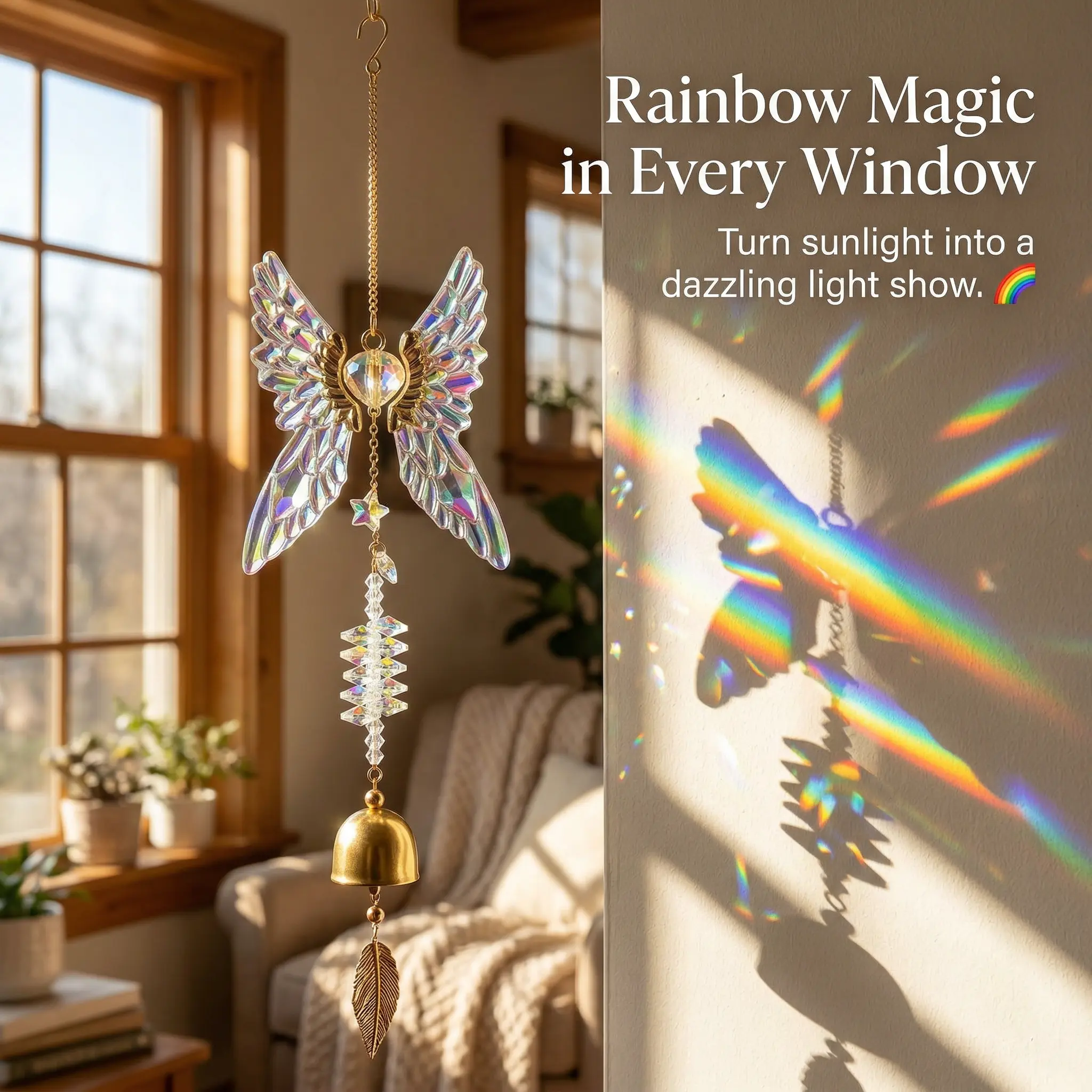 Angel Wing Crystal Sun Catcher 4 Styles - Hanging Rainbow Maker with Heart & Bell for Home Decor , Handmade Crystal Prism Rainbow Maker for Window & Garden , Crystal Hanging Ornament Gift for Mom & Friends glass christian art office wall gardening