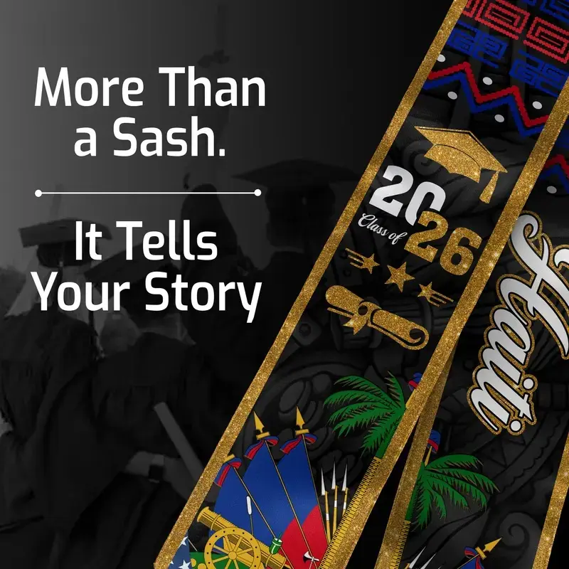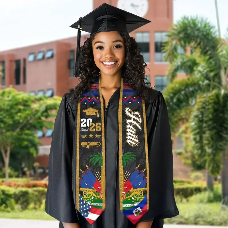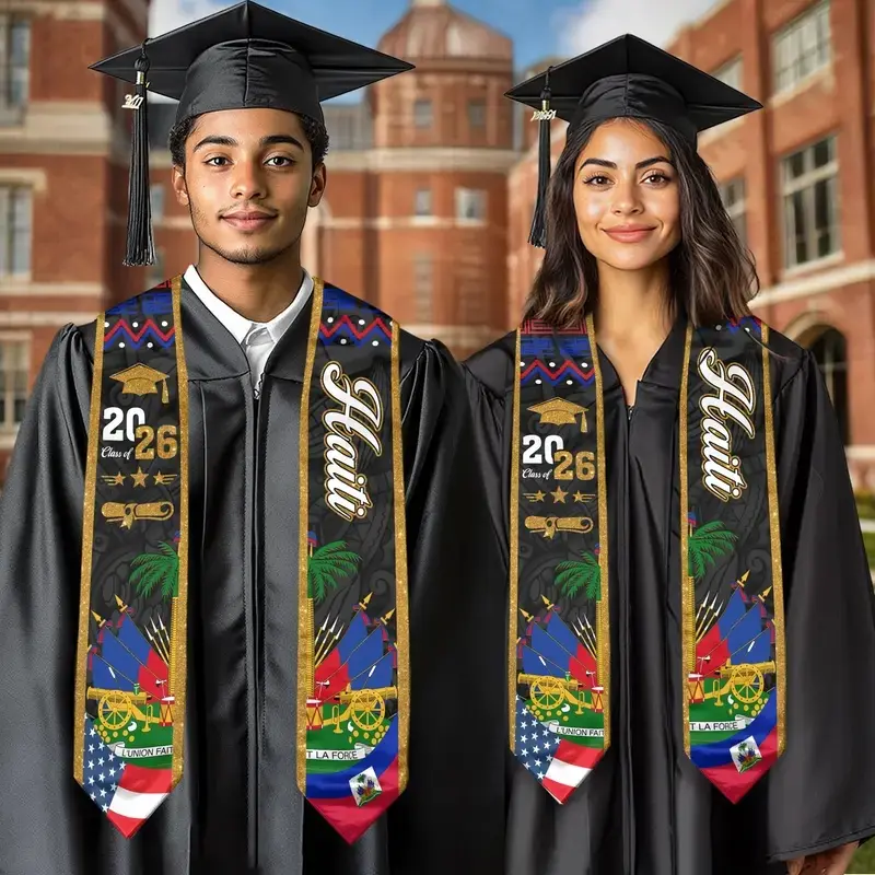 5. Haitian Graduation Stole 2026, Haiti Flag Graduation Sash, Class of 2026 V Shape National Country Flag Stole