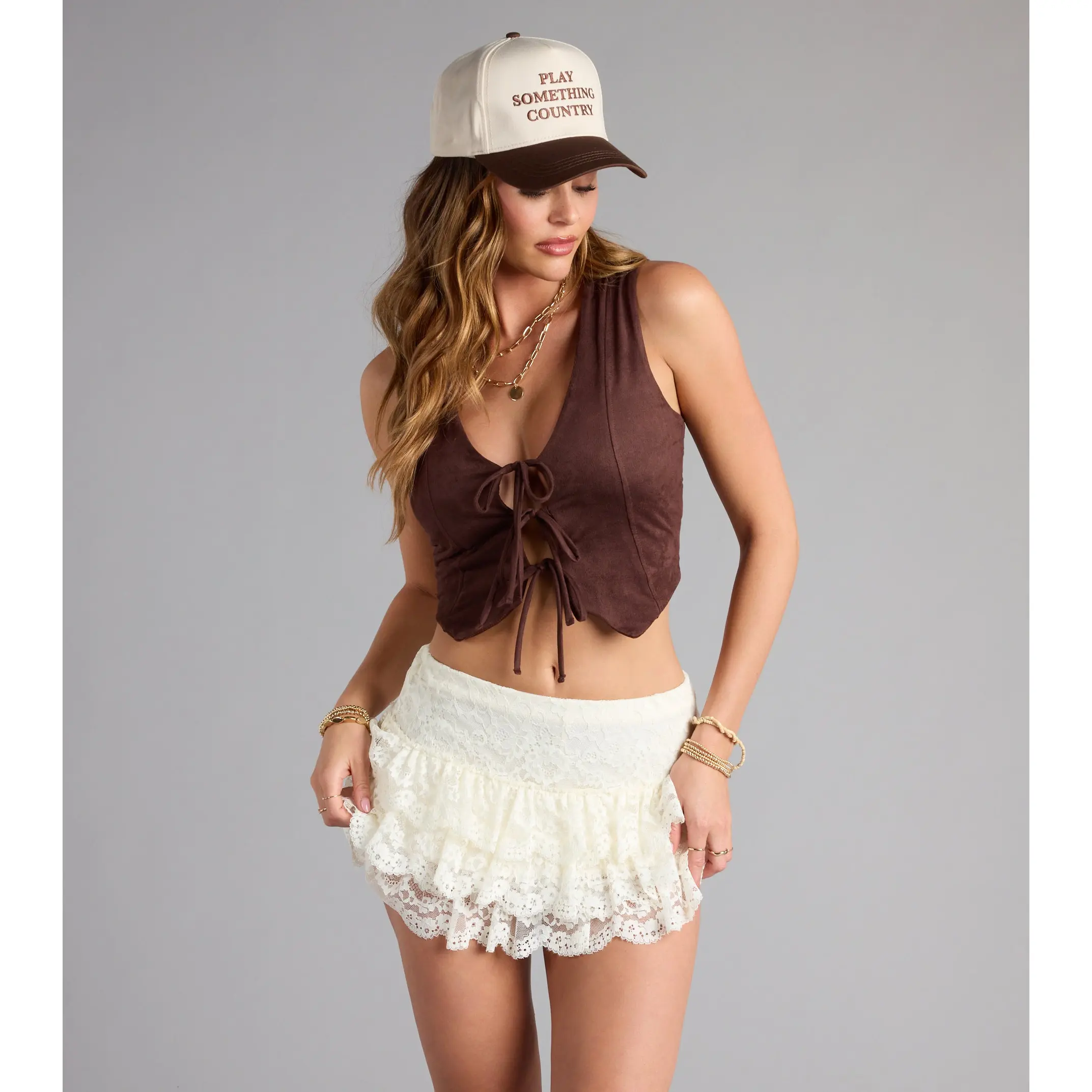 Low effort, high impact—this one just gets it. A lace-up crop vest top that hugs in all the right places, perfect for concerts, day dates, or wherever the plans take you.