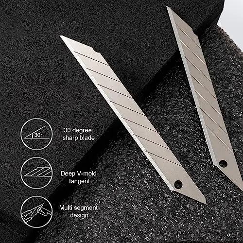 Multipurpose: Highly Durable Hardened carbon Steel – The 30 degree blade is essential for all kinds of precision work and will allow you to make delicate cut through paper, vinyl, cardboard, plastic, foil, fabric, or leather with ease.
