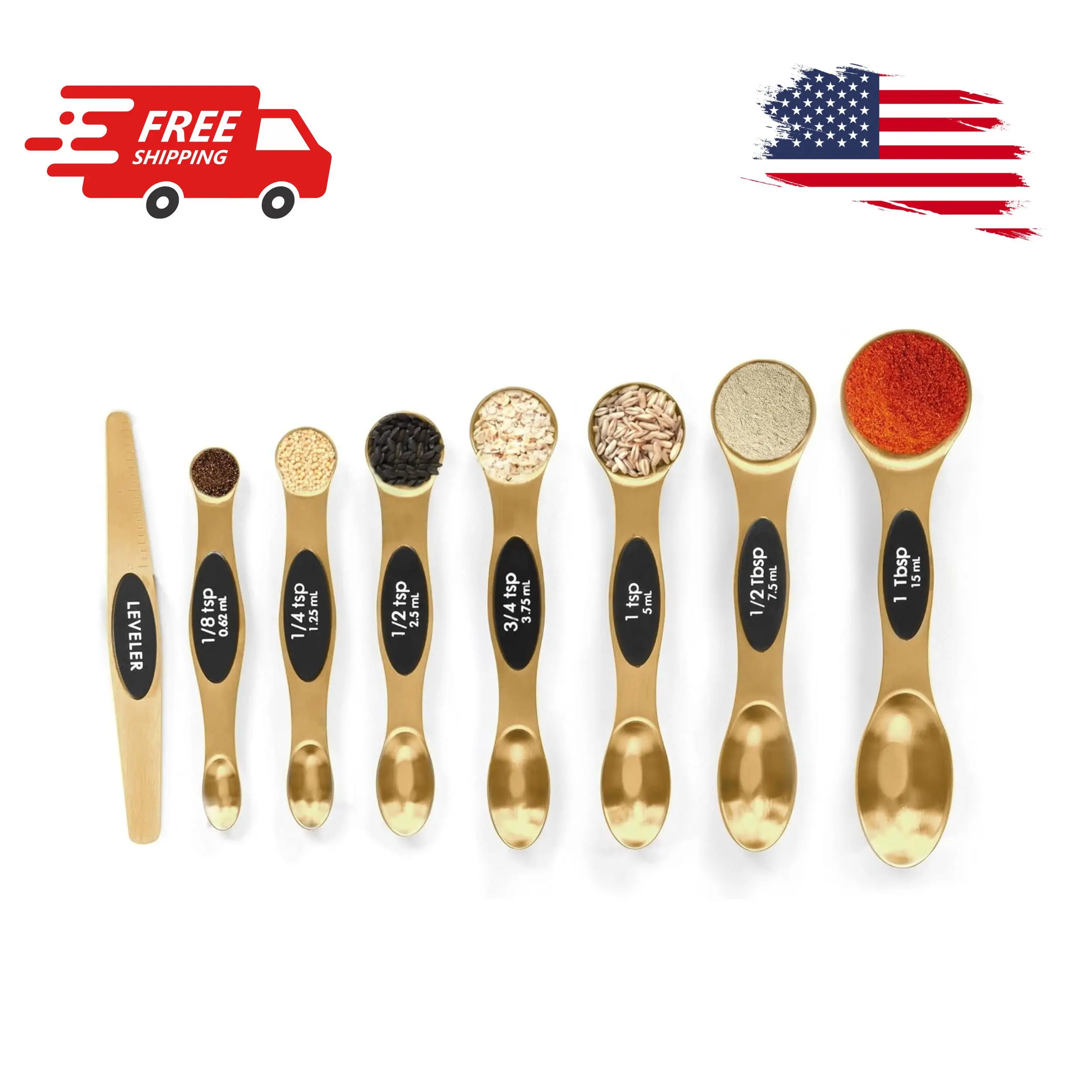 ·Accurate Measuring Spoons Set: Designed stainless steel double-headed spoons set and a leveler,black plastic label on the magnetic measuring spoons set stainless steel with clear usa standard measurement markings is useful for you to cook pastry food more accurately.This tables gadgets new apartment essentials spoons set is available in various sizes, includes 1/8 tsp, 1/4 tsp, 1/2 tsp, 3/4 tsp, 1 tsp, 1/2 Tbsp, 1 Tbsp plus and 1 leveler.