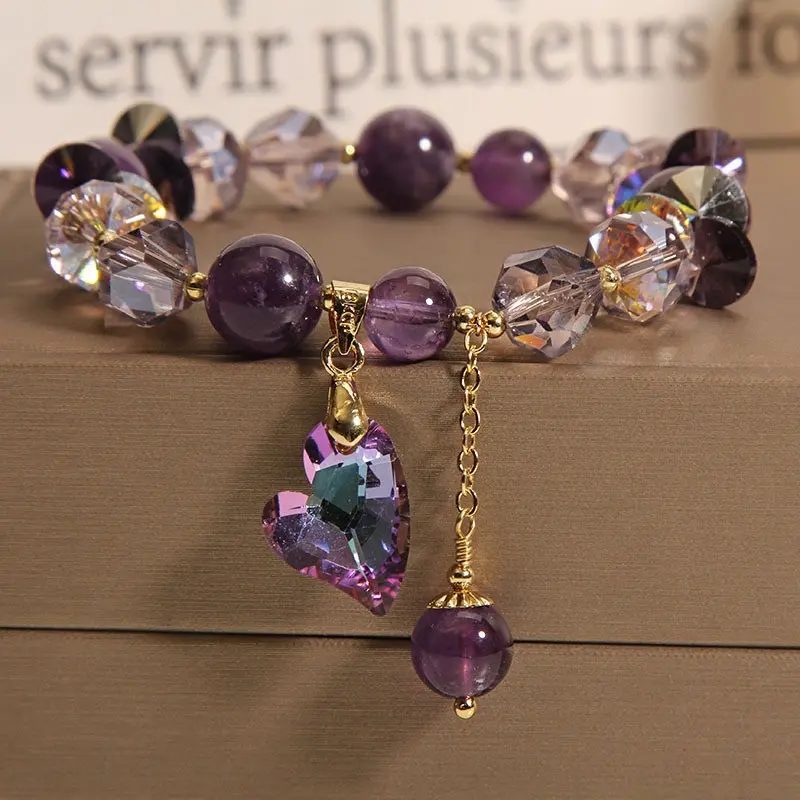 Design Description: The amethyst beaded bracelet has a simple and generous design.The luster and color of the beads and the different shapes of the pendants reflect each other, showing an elegant temperament and unique personality.