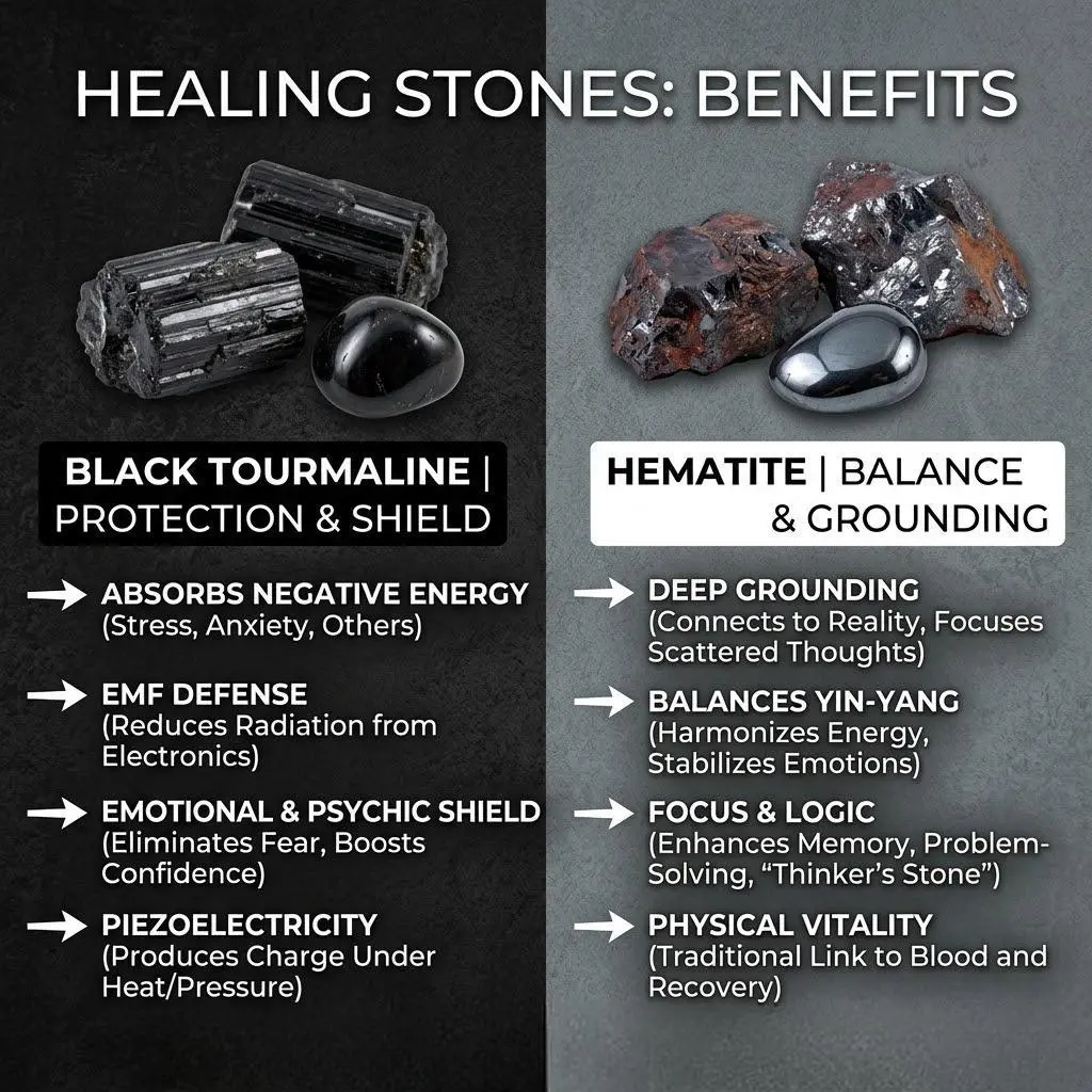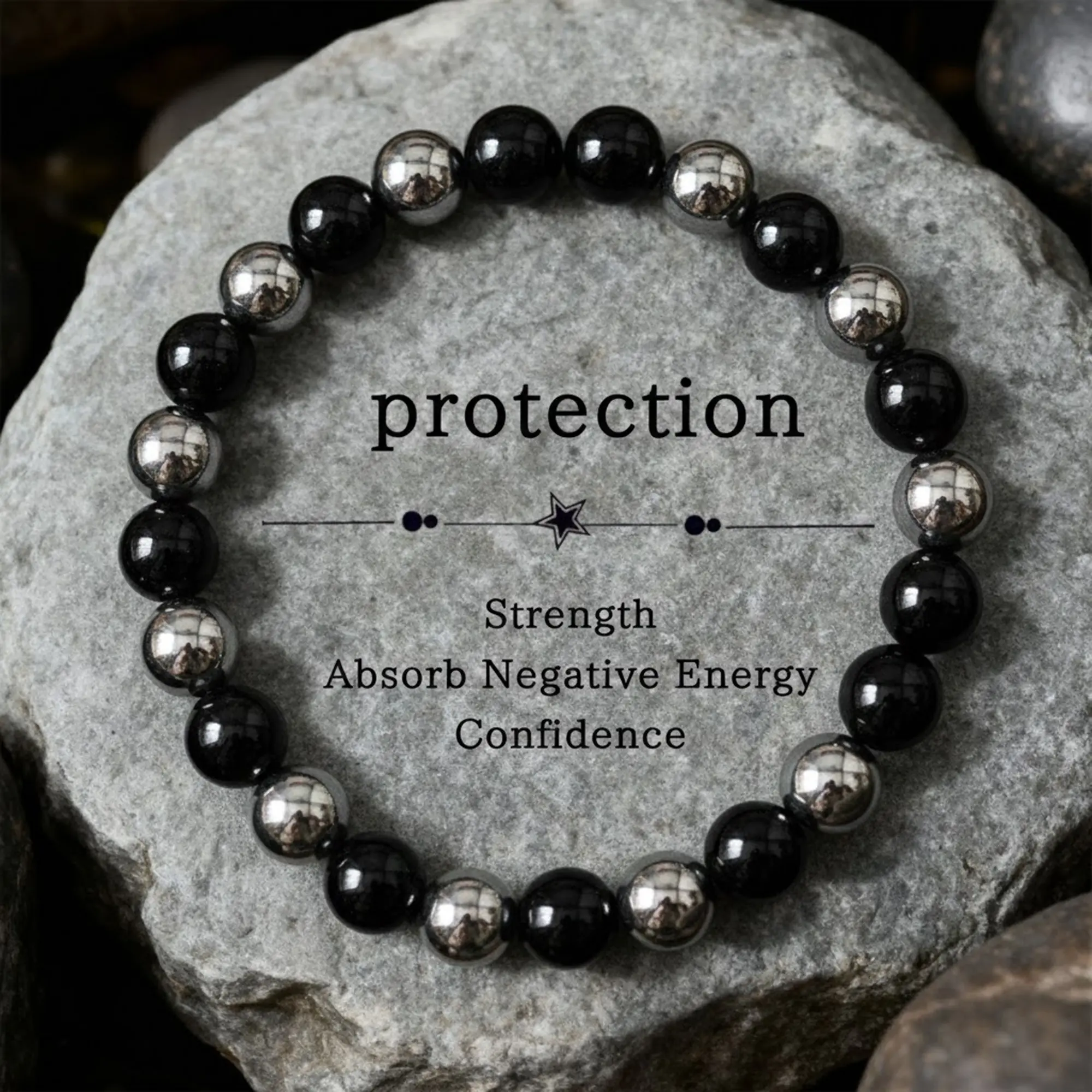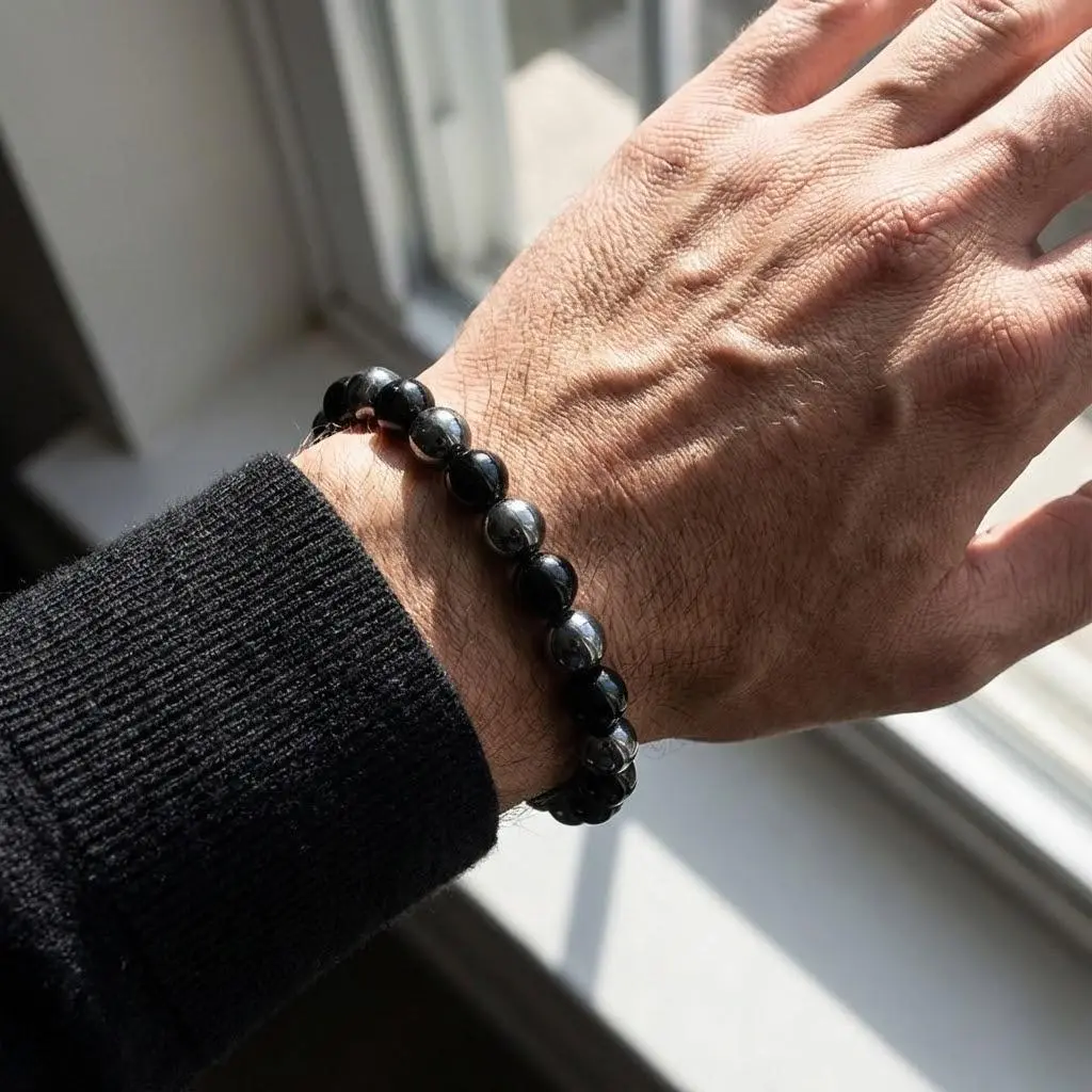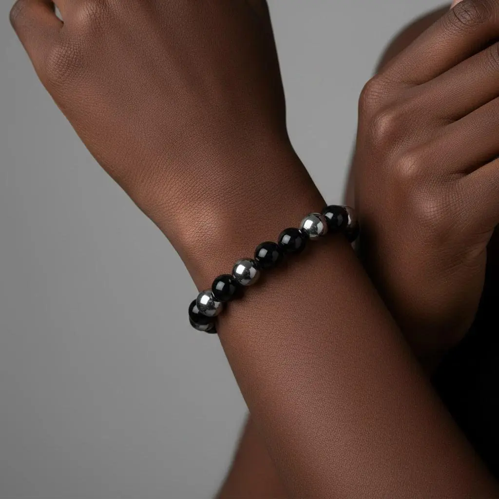 Protection Black Tourmaline & Hematite Bracelet – Grounding Energy Shield| 8mm Unisex Crystal Beads| Daily Wear Gift