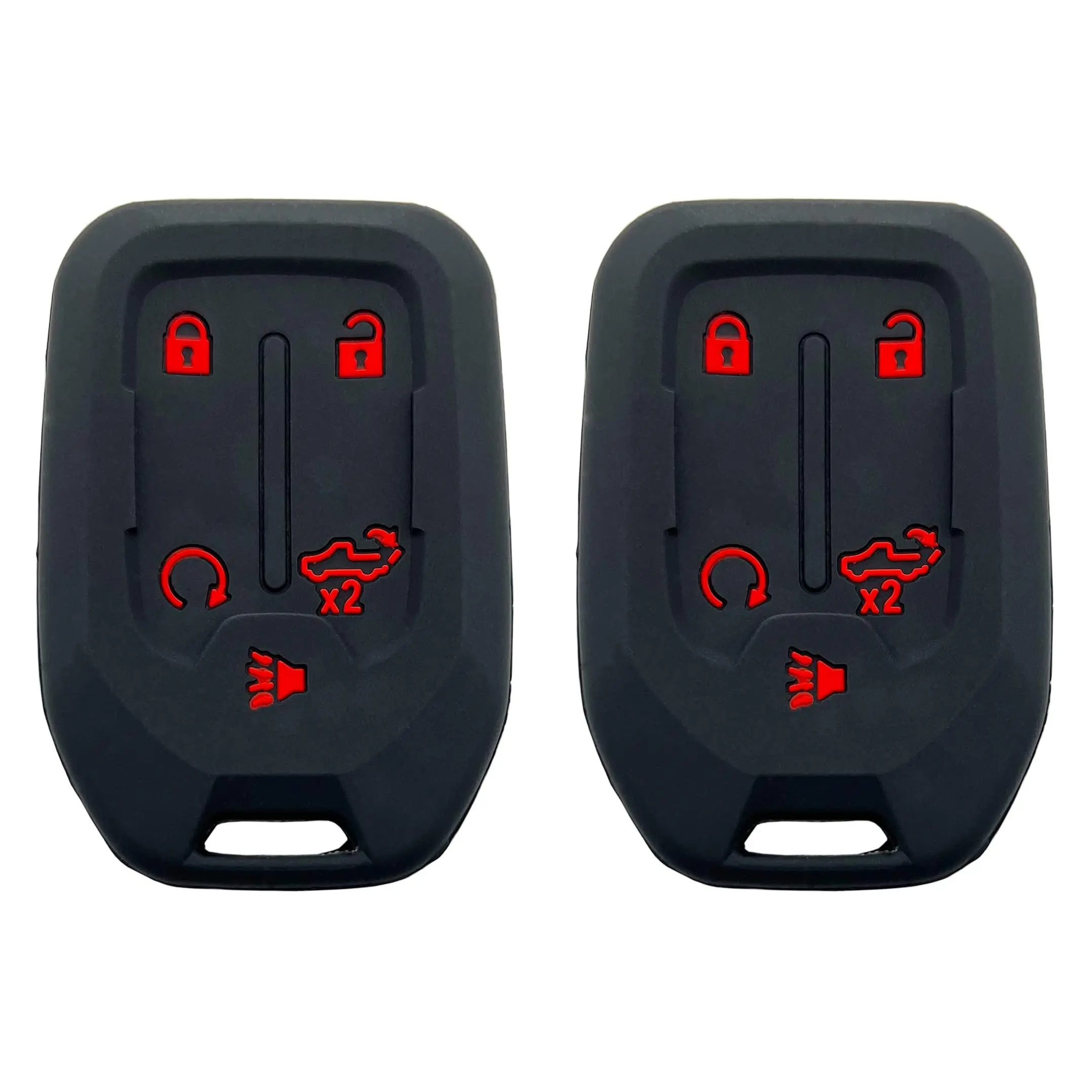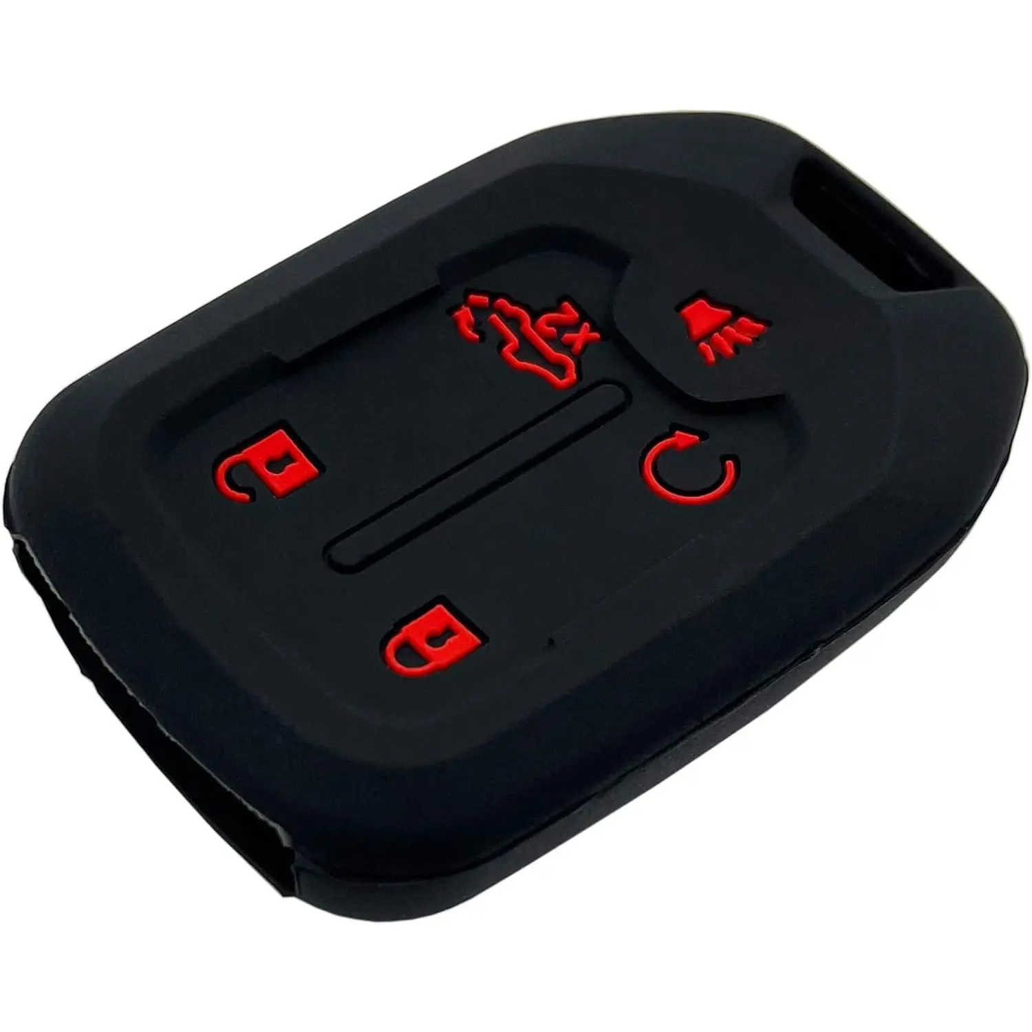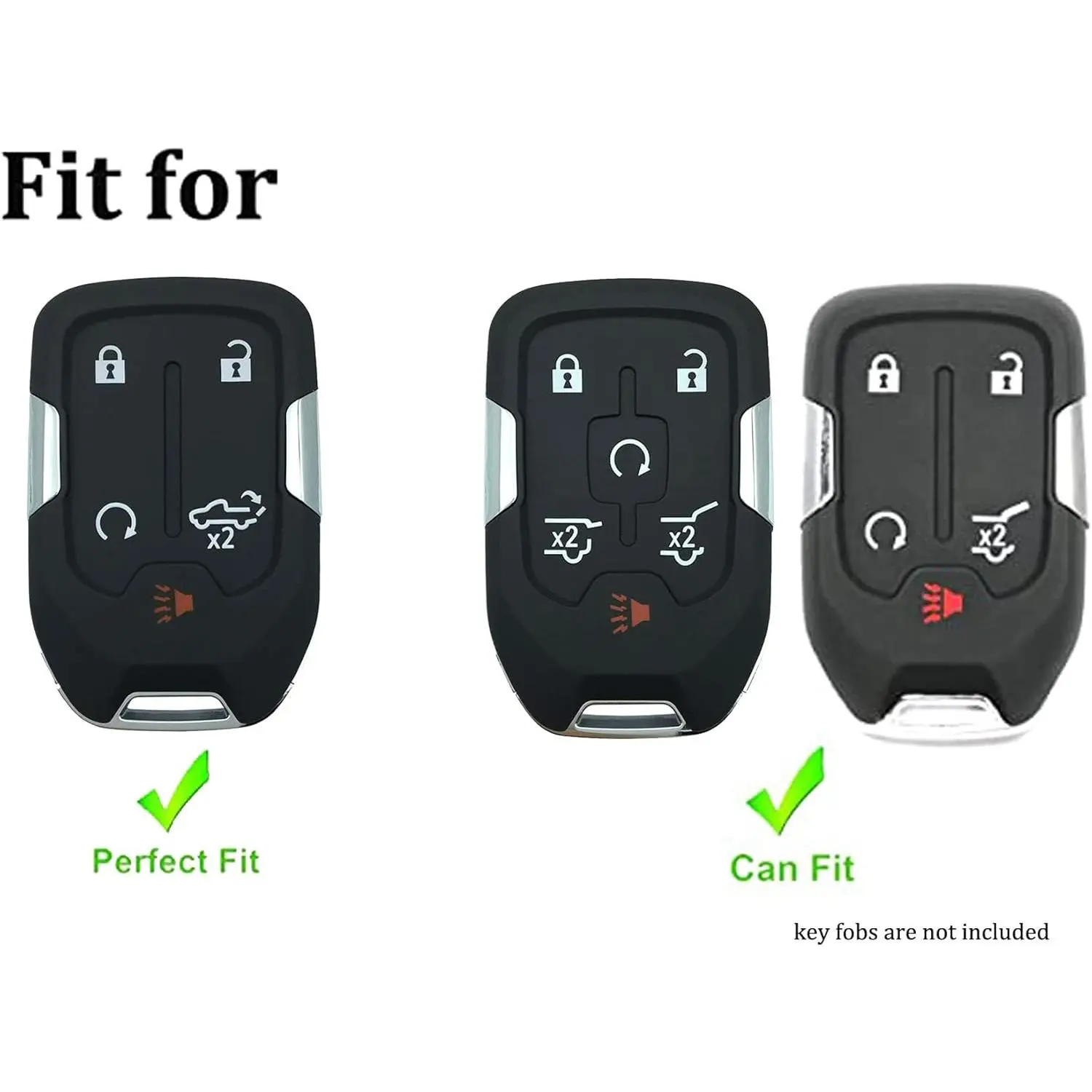 Smart Key Fob Cover Case Fit for Chevrolet Chevy Silverado and GMC Sierra 1500 2500HD 3500HD Accessories Keyless Entry Remote Control Car Key Fob Protector (Black with Red + Black with White)