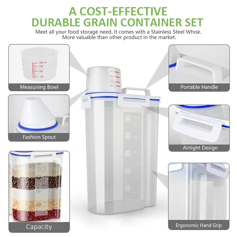 Mothers Day Gift Thickened Rice Bucket Household Food Storage Jars Airtight Moisture Proof Grain Containers Cereal Boxes Food Grade Plastic for Kitchen Pantry Organization