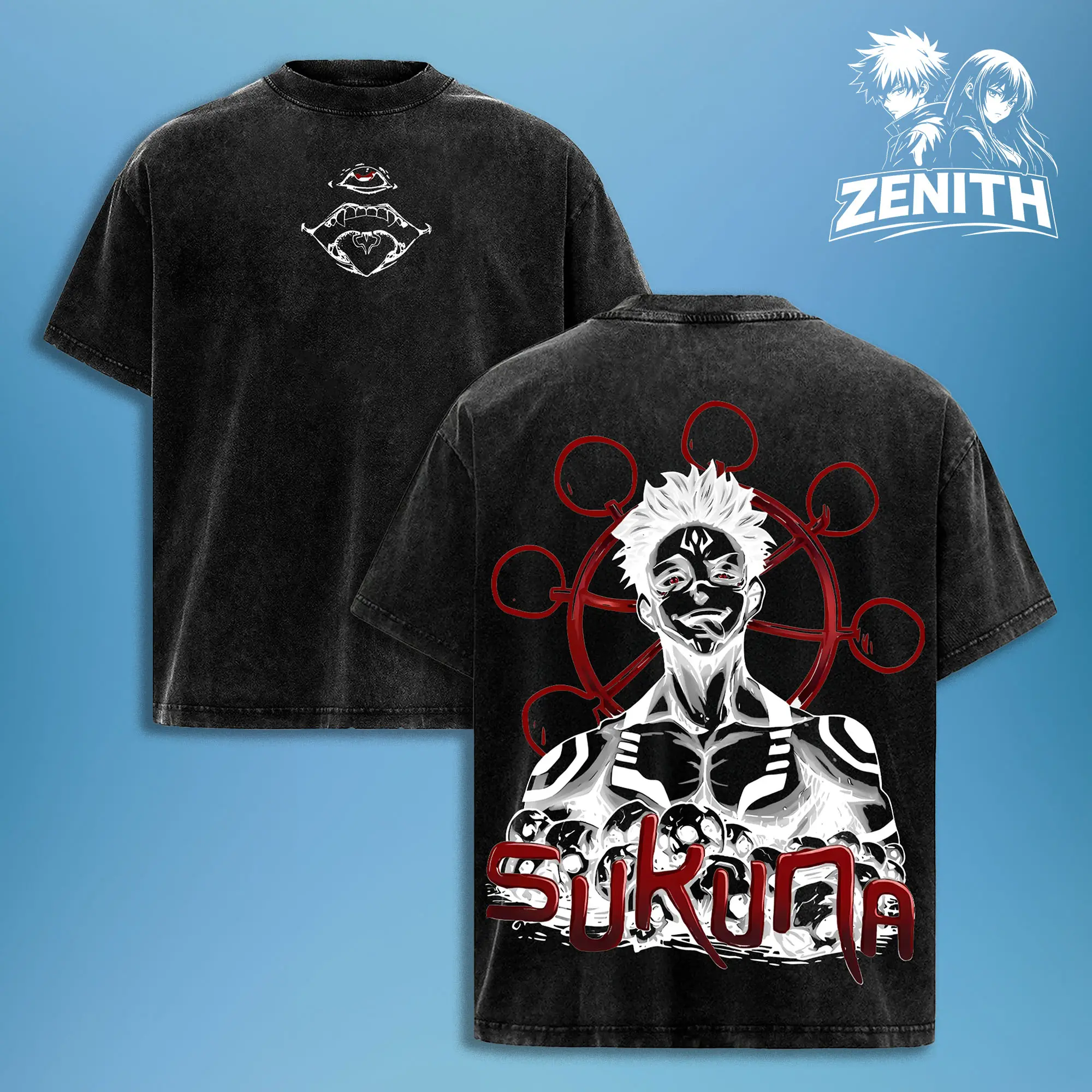 Sukuna Tee Washed / Hoodie Washed – Jujutsu Kaisen Execution The Movie Culling Game Arc Vintage Oversized Heavy Cotton Double Printed Anime Manga T-Shirt & Hoodie, Retro Unisex Streetwear Graphic Top, Ryomen Sukuna’s Vessel Curse King Edition, JJK Japanes