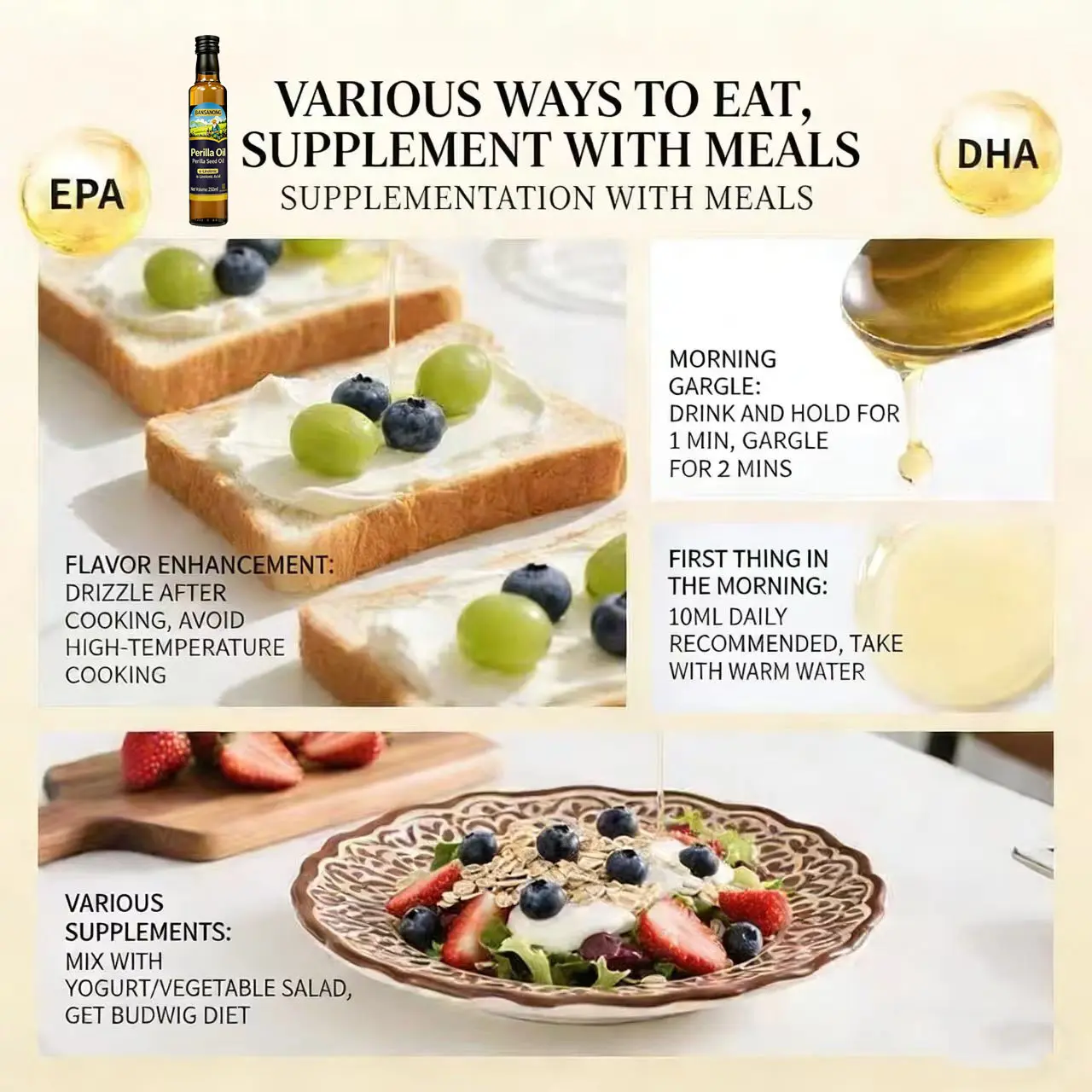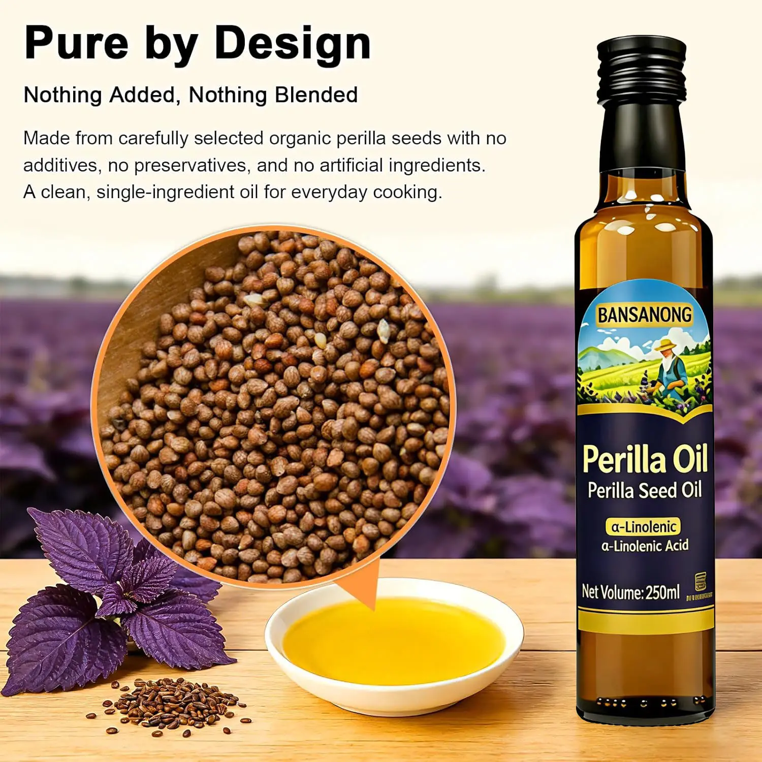 Elevate your daily wellness with our 100% pure, cold-pressed Perilla Seed Oil—the ultimate plant-based source of Omega-3 (Alpha-Linolenic Acid, ALA) .