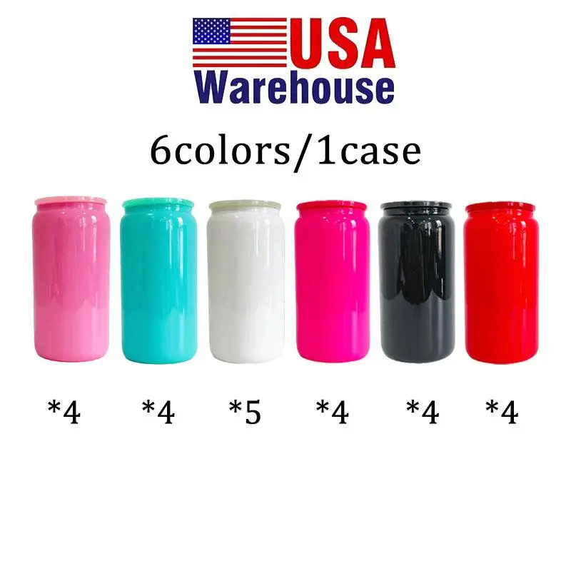 25/50 Pack Sublimation 16oz Neon Color Cup Beer Glass/Plastic Can Summer Colorful Soda Cans, Cups With Plastic Lids