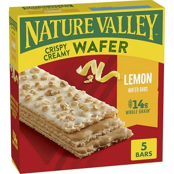 CONTAINS: One regular cardboard box of Nature Valley Crispy Creamy Wafer Bars, Lemon Flavored Snacks, 5 Bars, 6.5 oz; Perfect for instant snacking