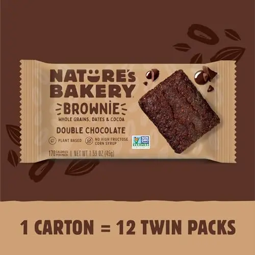 Nature’s Bakery Double Chocolate Brownie Bars, Whole Grains, Dates, and Cocoa, Plant Based, Dairy-Free, Snack Bar, Box of 12 twin packs