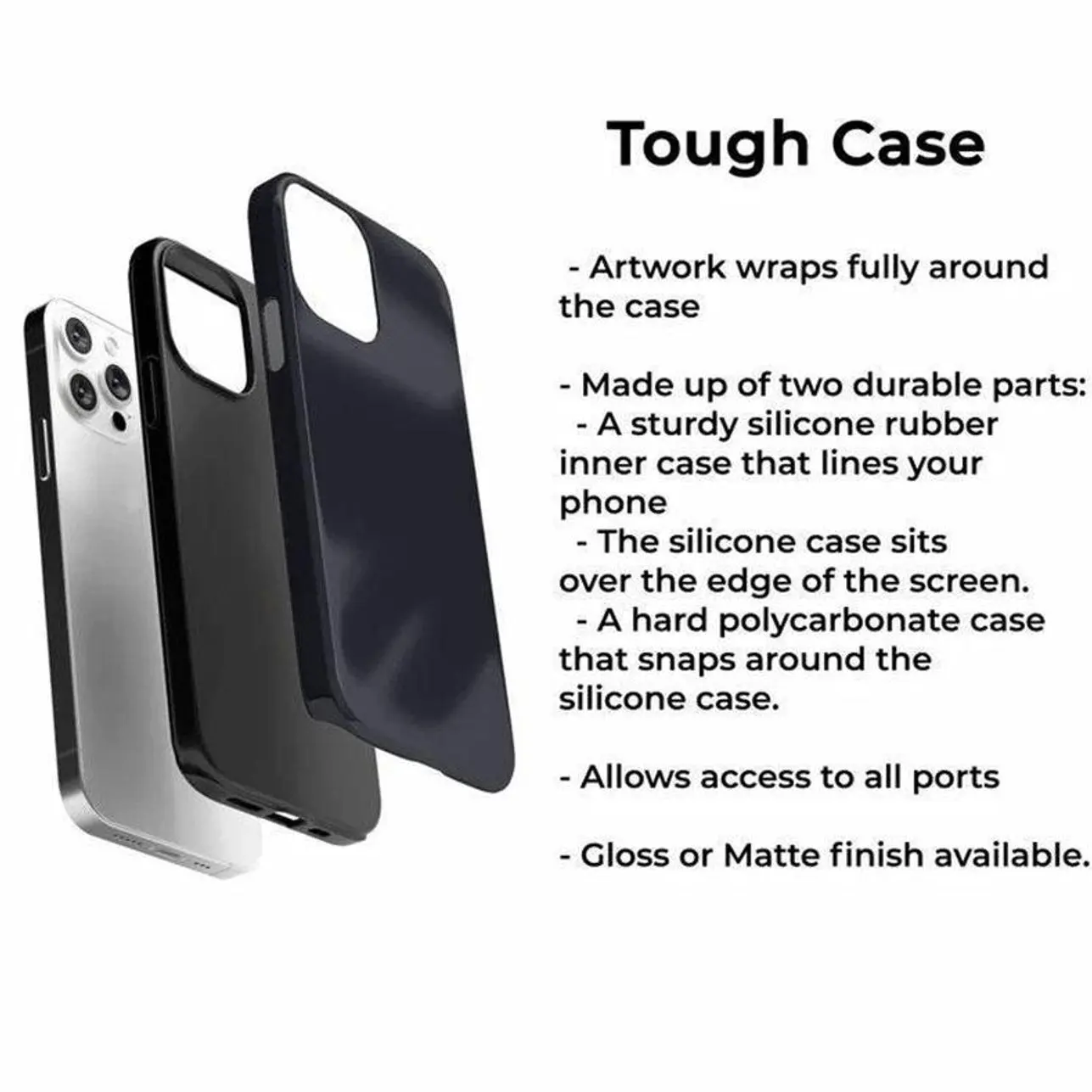 Protect your phone in custom style with this tough phone case. This lightweight phone case is impact-resistant thanks to its TPU lining and Polycarbonate shell. Meanwhile, the interior rubber liner adds an extra layer of protection to your phone for total peace of mind. Compatible with iPhone and Samsung smartphones. Check sizes for all available phone models. (iPhone 16 model now available).