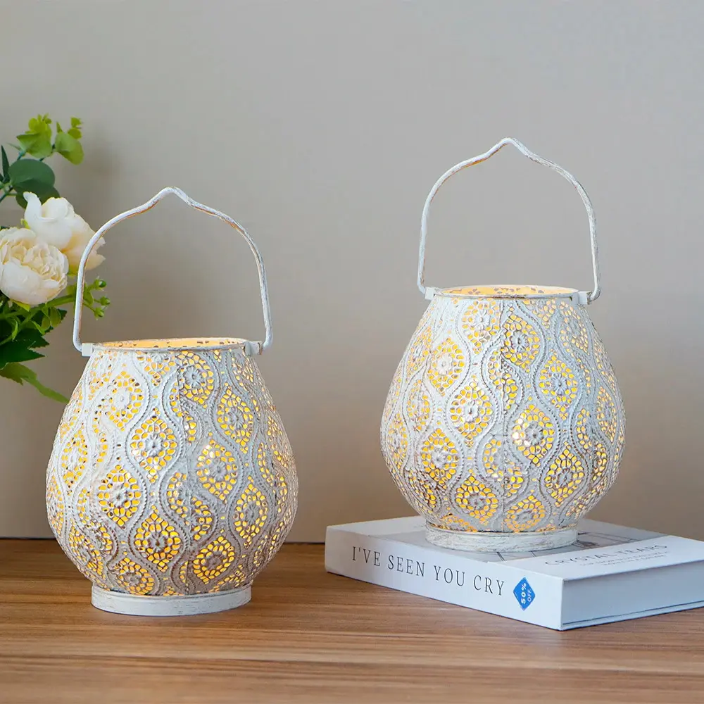 Elevate your holiday decor with this charming lantern set.Perfect for gardens, bedrooms, and living rooms, these vintage white lanterns add a festive touch.Each lantern measures16.00*16.00*18.50 cm, crafted from metal for durability.The set includes 2pcs per box, individually packaged in 35.00*18.00*20.00 cm.Ideal for gifting, these battery lights bring warmth to any space.