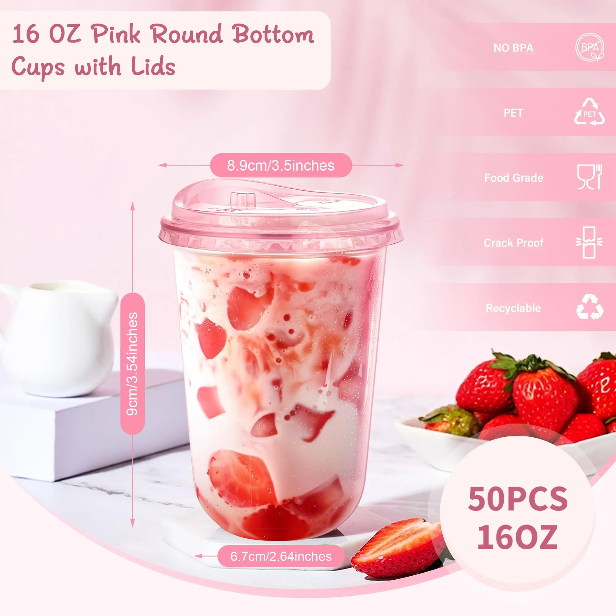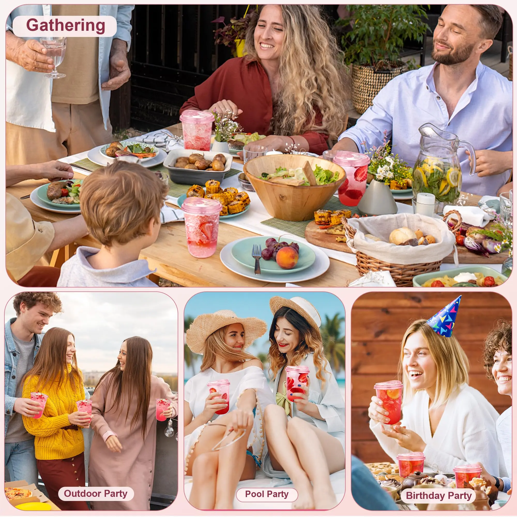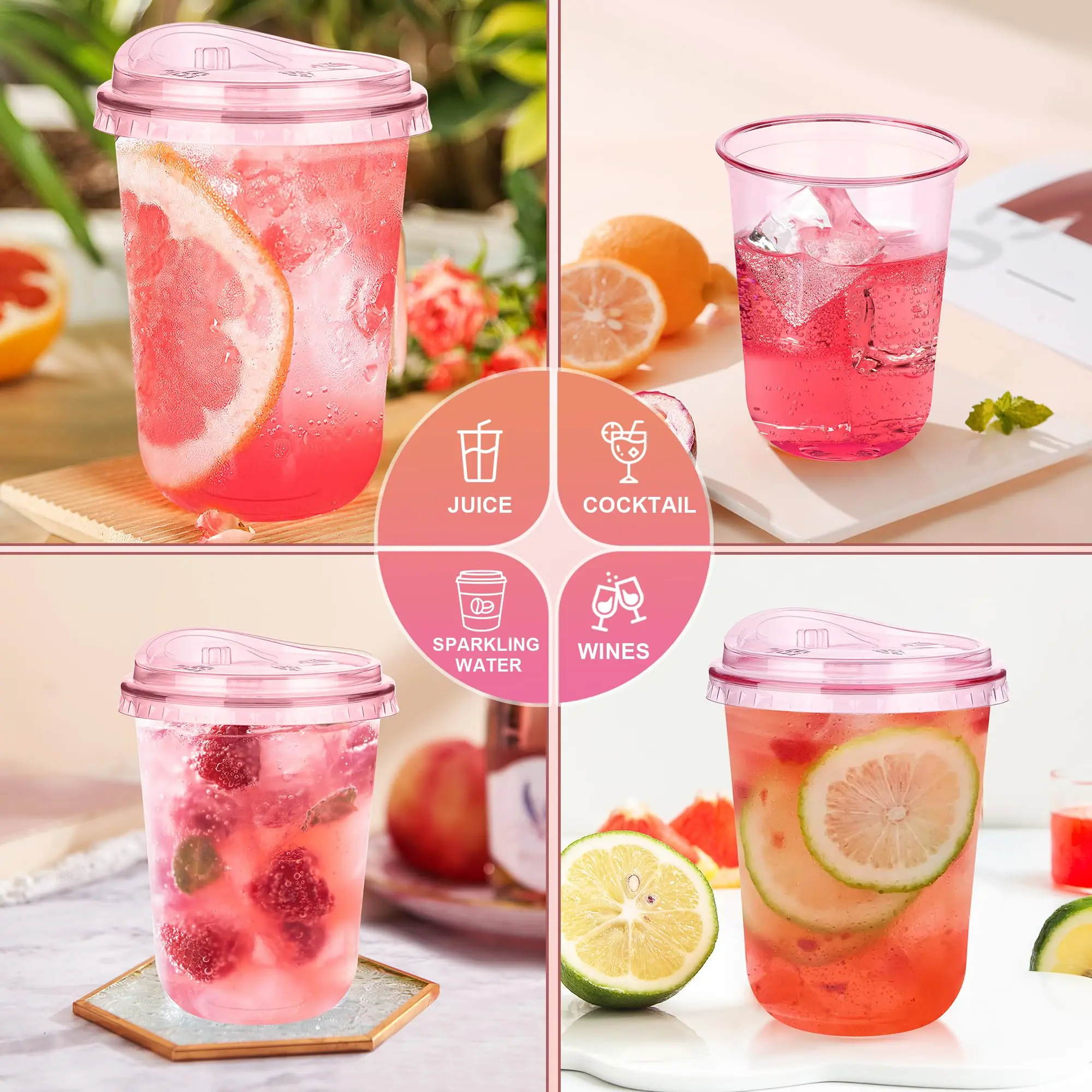 ✨50-Pack (400ml) Pink Plastic Cups with direct-drink lids.These disposable coffee cups feature round bases and no handles, making them portable.Ideal for Christmas, Valentine's Day, birthdays, and wedding parties.🎄❤️