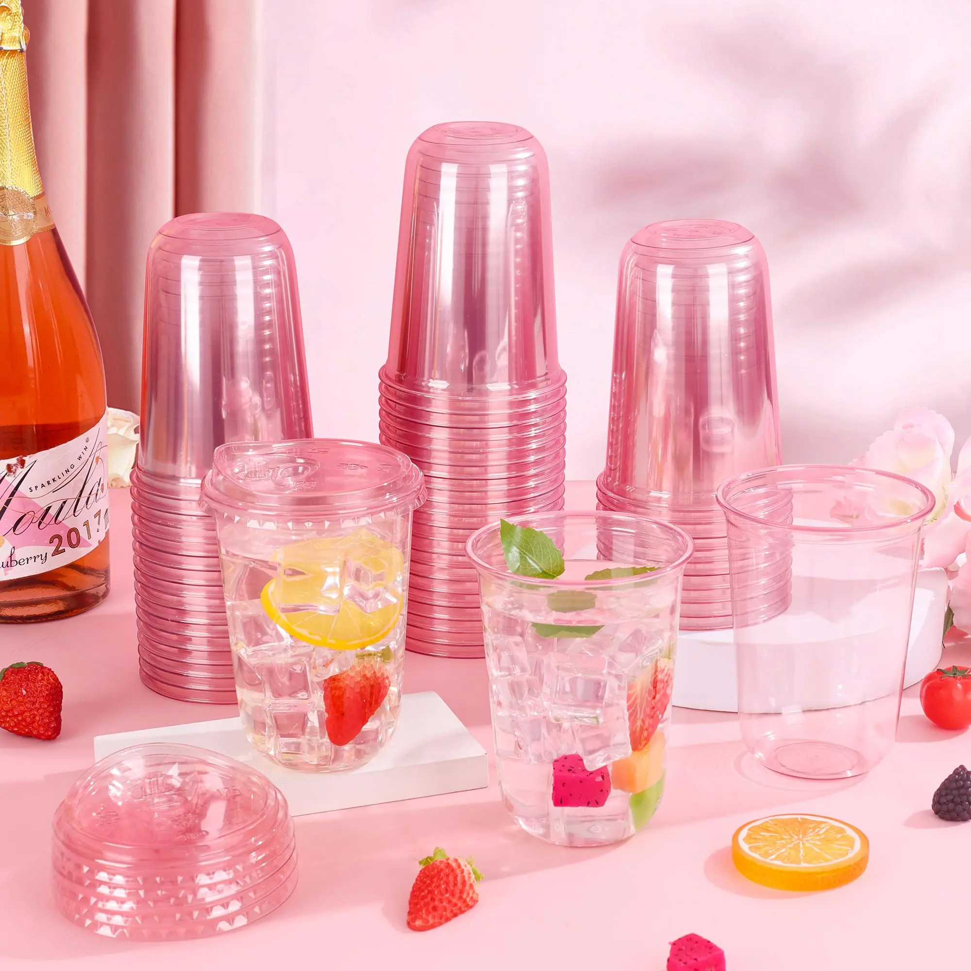 Pink Plastic Cups: Durable and convenient for any occasion.