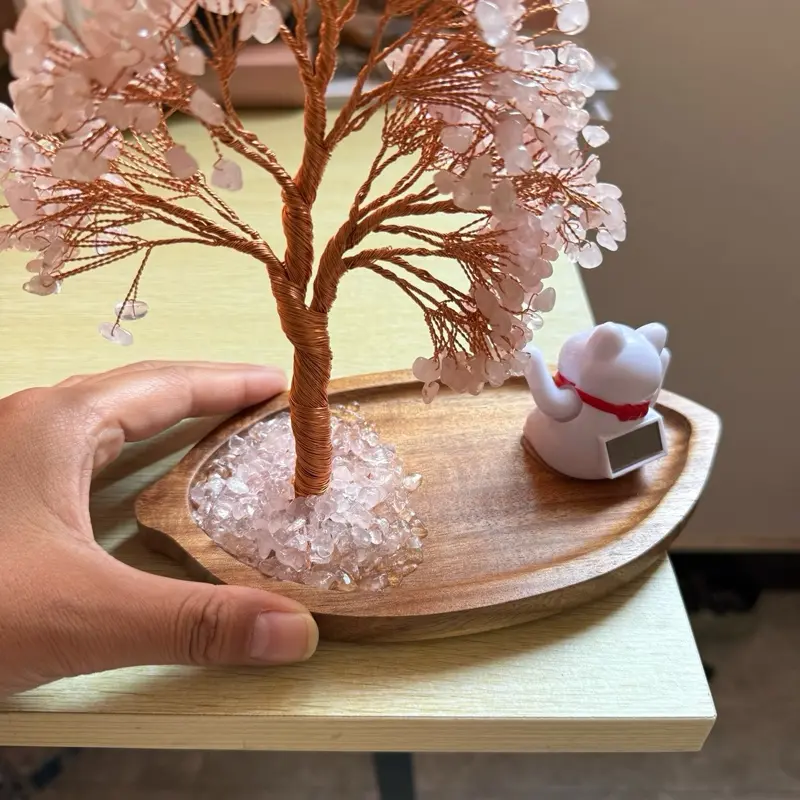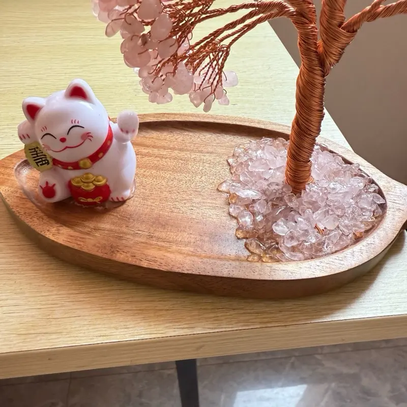 Raising the left paw means attracting customers; raising the right paw means attracting wealth.The money tree symbolizes prosperity, wealth accumulation and good fortune.