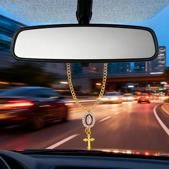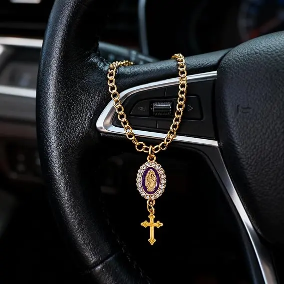 Delicate Design: our rosary for car mirror hanging is designed with chains, cross, and catholic medals; Symbolizing the spiritual trust and reverence of Catholics, hanging on the steering wheel of the car, like a flowing prayer and blessing, always accompanying, bringing comfort for safe travel