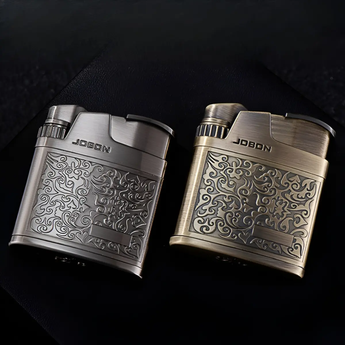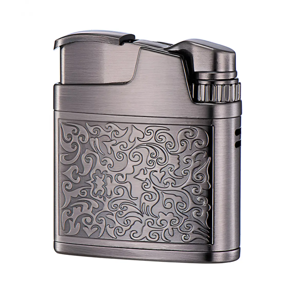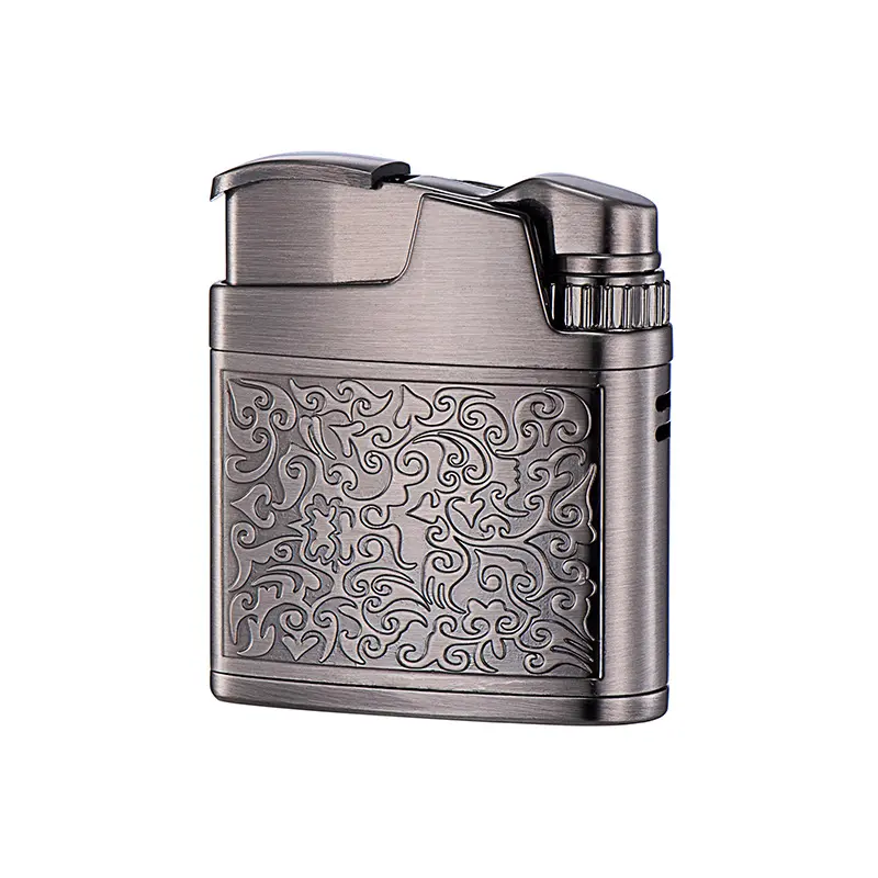 Windproof Retro Gas Lighter, Metal Lighter With Arabesque Flower Relief & Classic Wire Design, Silver Bronze Finish, Gift Box Packed, Suitable For Camping Candle Grill BBQ, (Without Fuel)