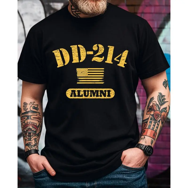 Vintage DD 214 Alumni American Army Graphic T-Shirt for Men - Funny Saying, Short Sleeve, Crew Neck, Classic Fit Tee - Ideal Christmas Gift for Husband, Dad, Grandpa