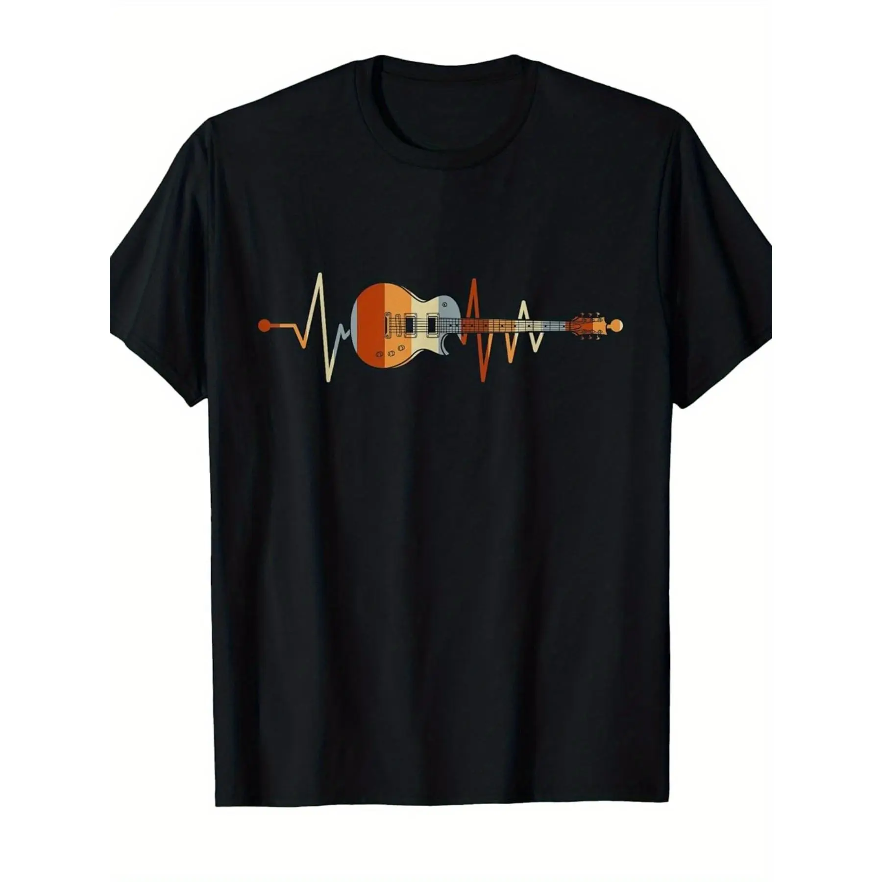 5. Retro Electric Guitar Heart Beat Graphic Tee 100% Cotton Breathable Unisex Men Women Rock Music Lover Casual Short Sleeve T-Shirt