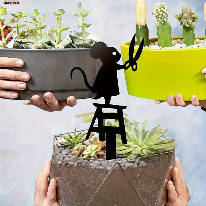 This metal mouse sculpture brings a lighthearted, storybook feel to your garden. The scissors detail adds a unique twist, making it a simple yet charming accent for your yard or flower bed.