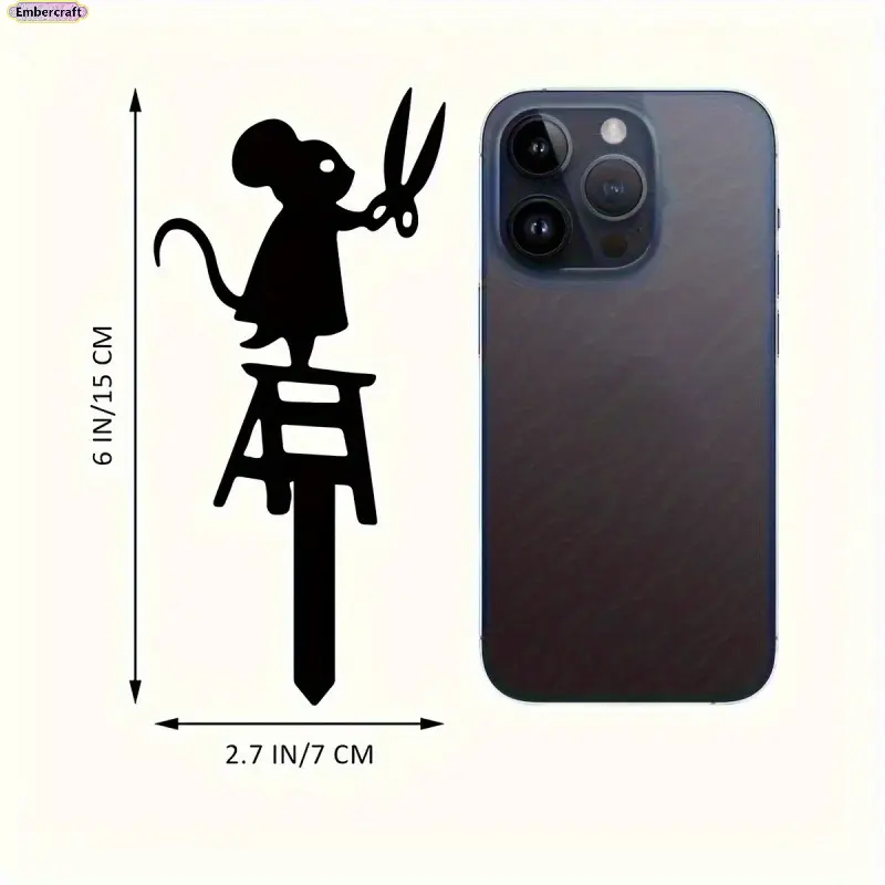 ·Crafted from black wrought iron with a playful mouse silhouette holding scissors