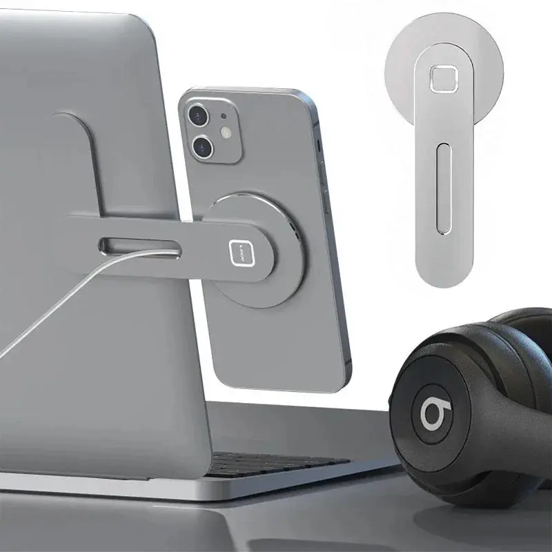 Magnetic Laptop Phone Holder Computer Monitor Side Cell Phone Slim& Foldable For All Phone secure hold clamp clip hook