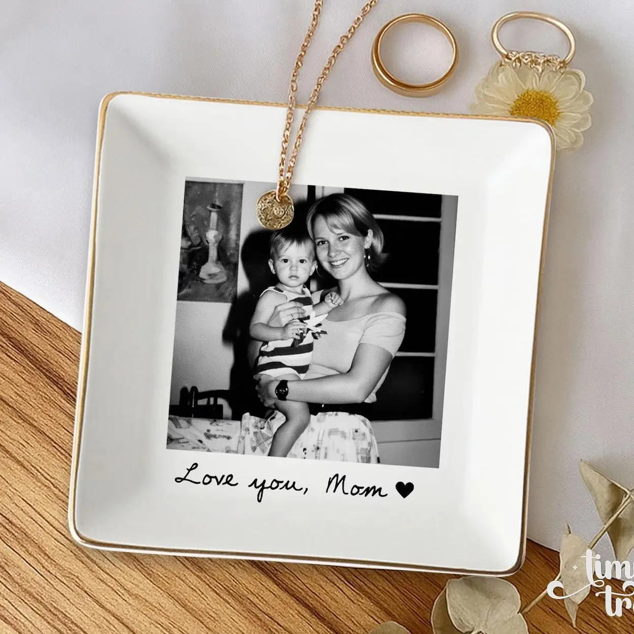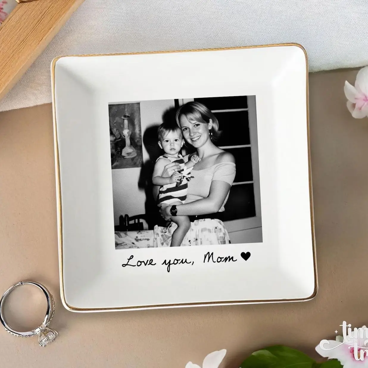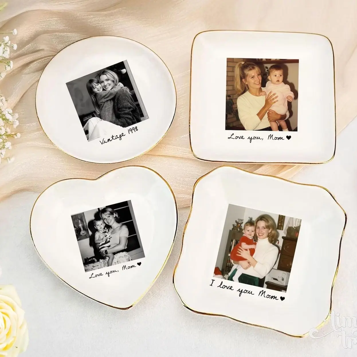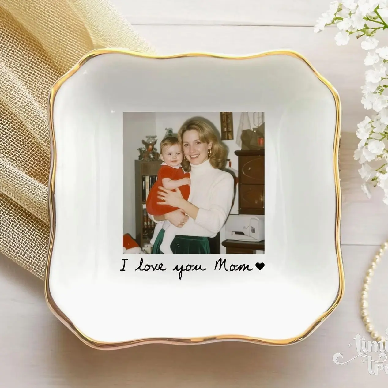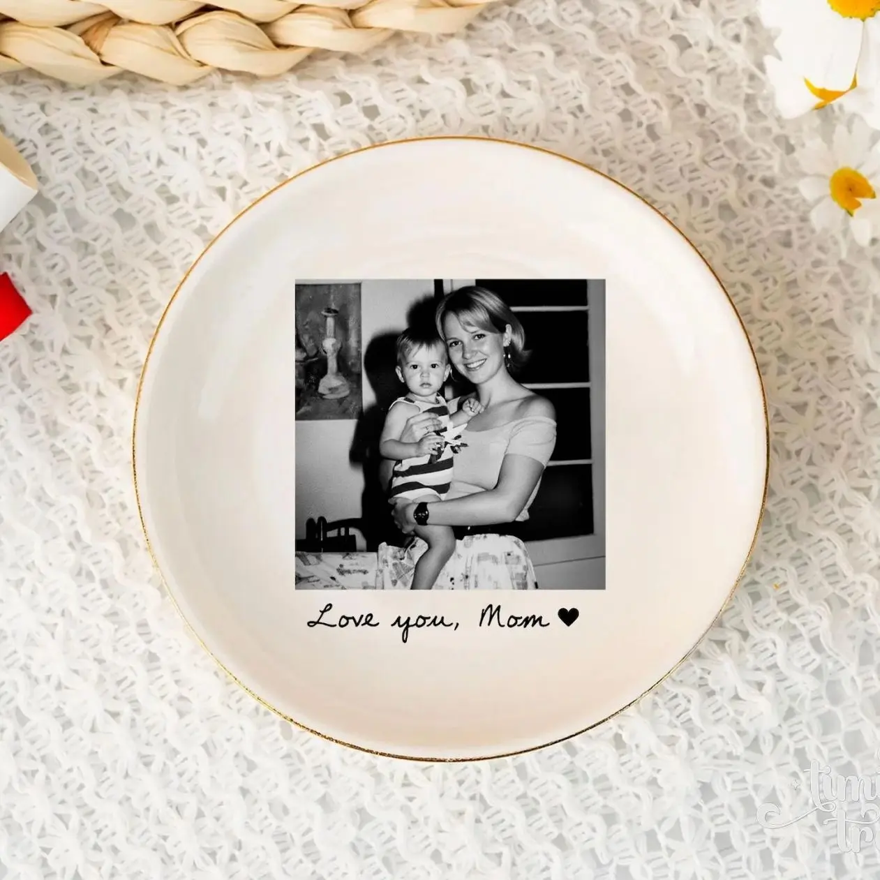 Personalized Mom Photo Jewelry Dish: Ceramic Trinket Tray Gift for Mom, Thank You Grandma, Birthday Ring Dish Gift, Mom Gift from Daughter