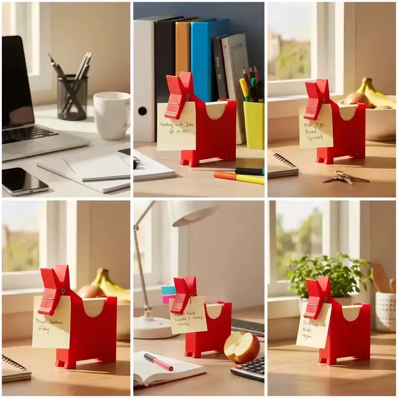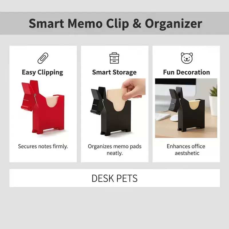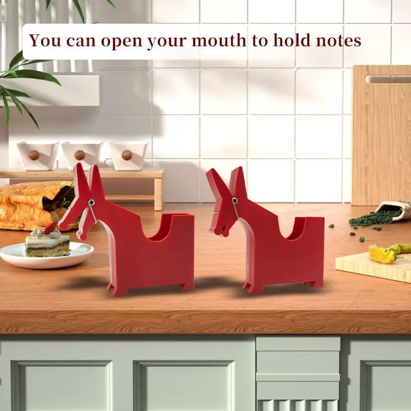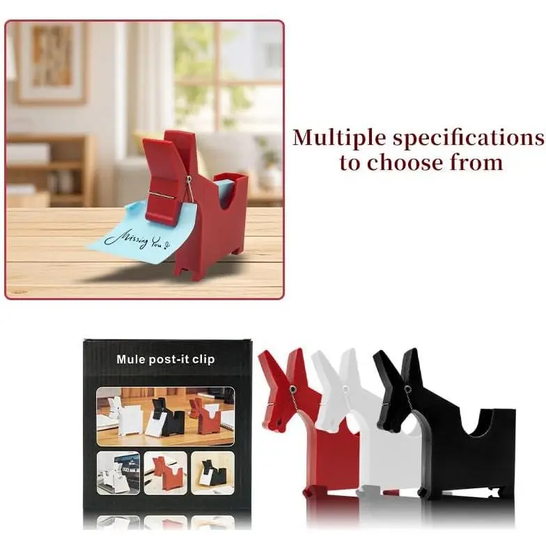 Add a whimsical touch to your desk organization with these charming mule-shaped note clip holders. This set of three clips comes in classic black, white, and red colors, bringing both style and functionality to your workspace. Each clip measures approximately 6.1 inches wide by 5.7 inches tall, making them perfect for holding notes, memos, receipts, and important documents while keeping your desk tidy. The clever mule design features a spring-loaded clip mechanism that securely grips papers while adding a playful aesthetic to your office decor. These sturdy desktop organizers are ideal for use at home, office, or school, helping you keep track of important papers with personality. The compact size allows for efficient use of desk space while ensuring your notes remain visible and easily accessible. Whether for personal use or as a unique gift for colleagues or students, these mule clips combine practical organization with delightful design elements that make everyday tasks more enjoyable.