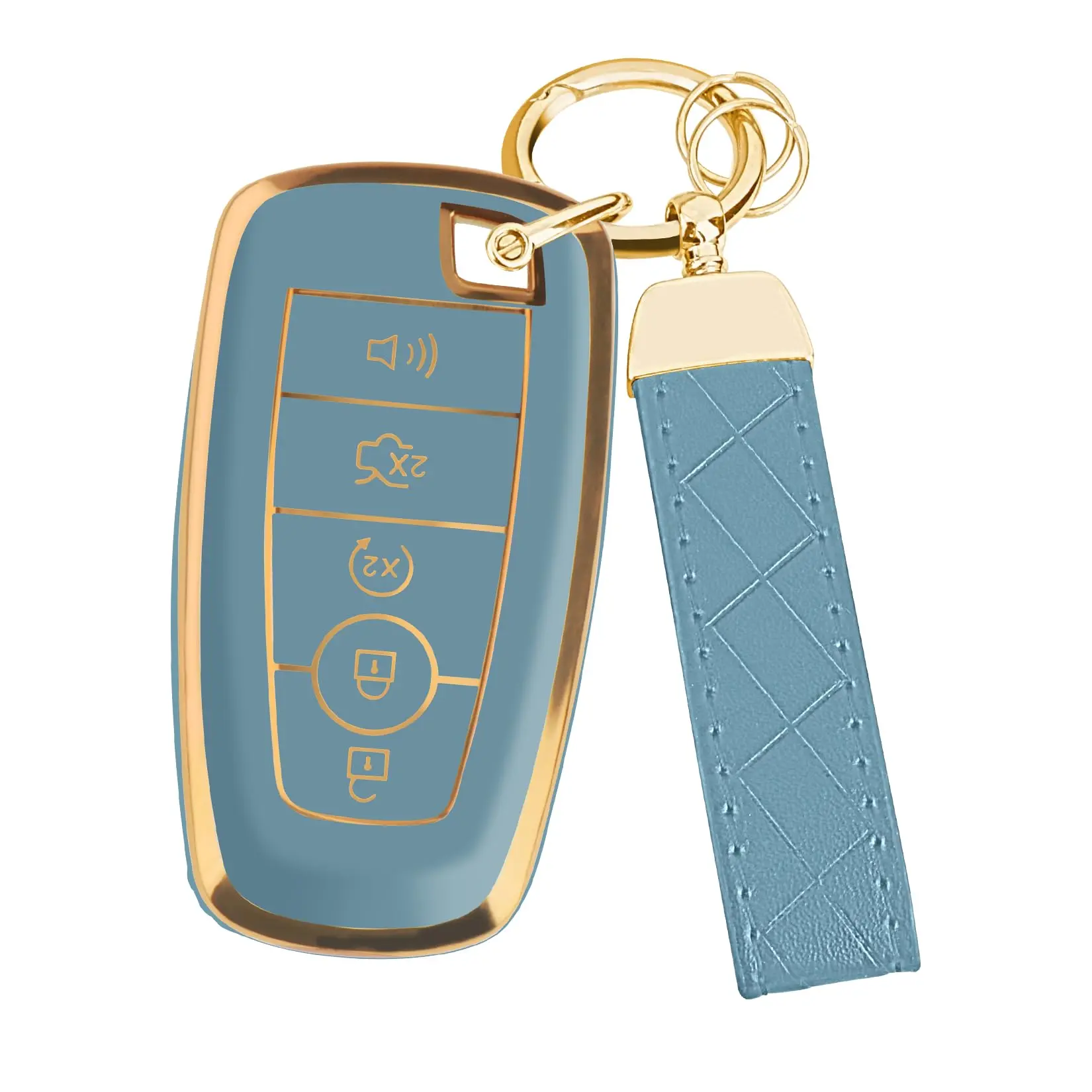 ·Premium TPU Protector: This slim fit cover is designed for Ford Explorer, Maverick, Mustang, Fusion, Escape, Edge, F150, F250, F350. It features a 5-button remote case in blue. 🌟