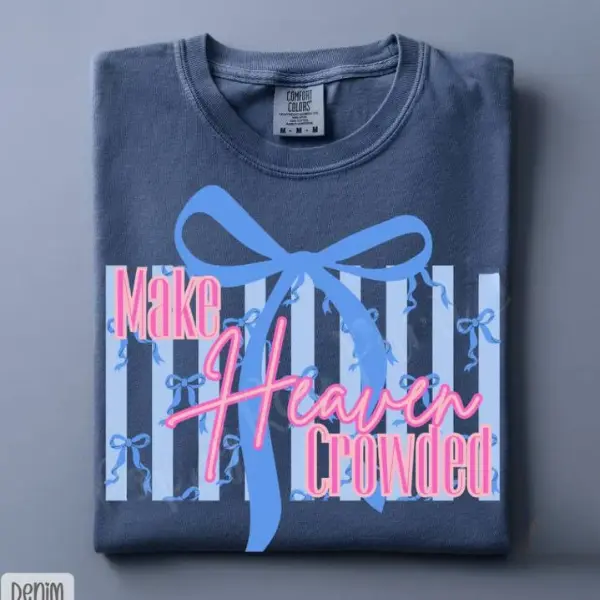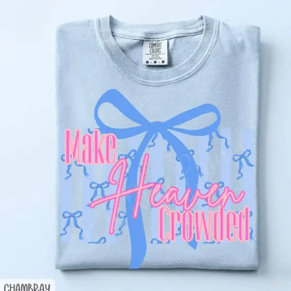 Share your faith in a soft and stylish way with this Make Heaven Crowded Bow T-Shirt ️. Featuring a meaningful message paired with a delicate coquette bow design, this tee blends Christian values with a trendy feminine aesthetic.