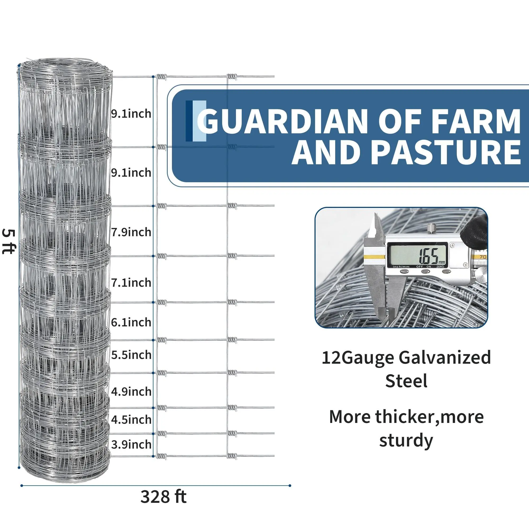 Livestock Fence, 5Ft x 328Ft Galvanized Wire Fencing, Cattle Farm Fence, Deer Fences, Heavy Zinc Goat Fences for Goat Deer Yard Livestock Protection