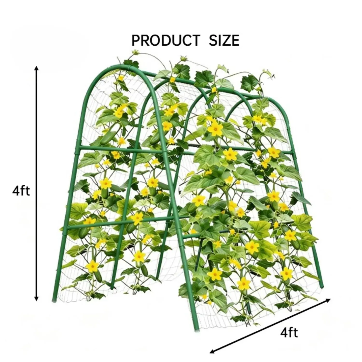 【Supports Heavier Fruits & Vines】This 4ft x 4ft metal garden arch trellis is designed to handle productive crops like cucumbers, melons, gourds, squash, and pumpkins, keeping them off the ground for cleaner, healthier harvests.