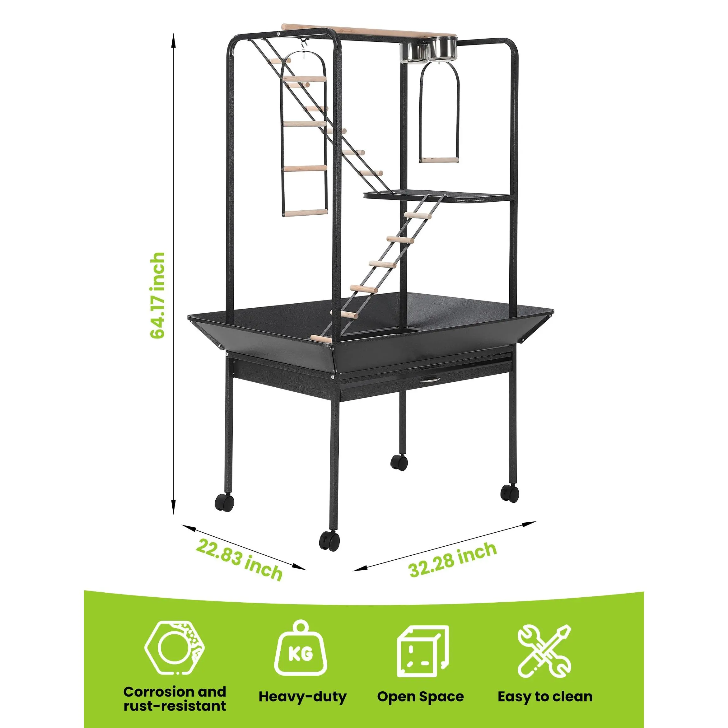 ·Ample Dimensions: Measuring 23.6" L x 23.6" W x 66" H, it comfortably accommodates 4 to 8 medium to large birds such as cockatiels, conures, amazons, and African greys.