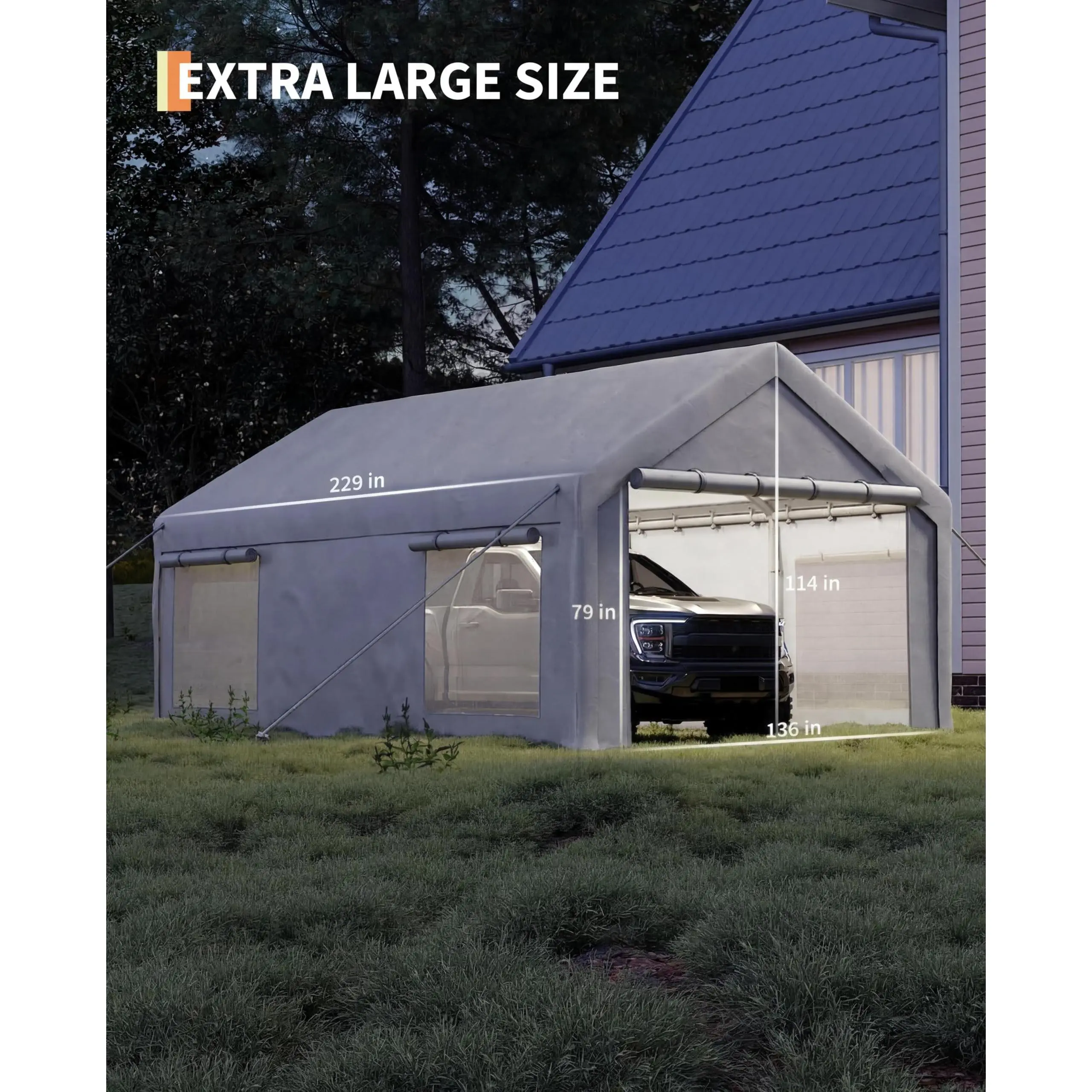 [Spacious & Versatile Shelter] This 240 sq. ft. portable garage accommodates full-sized pickups, bass boats, tractors, and more. Ideal for parties, events, storage, a paint booth, or as a temporary workshop.